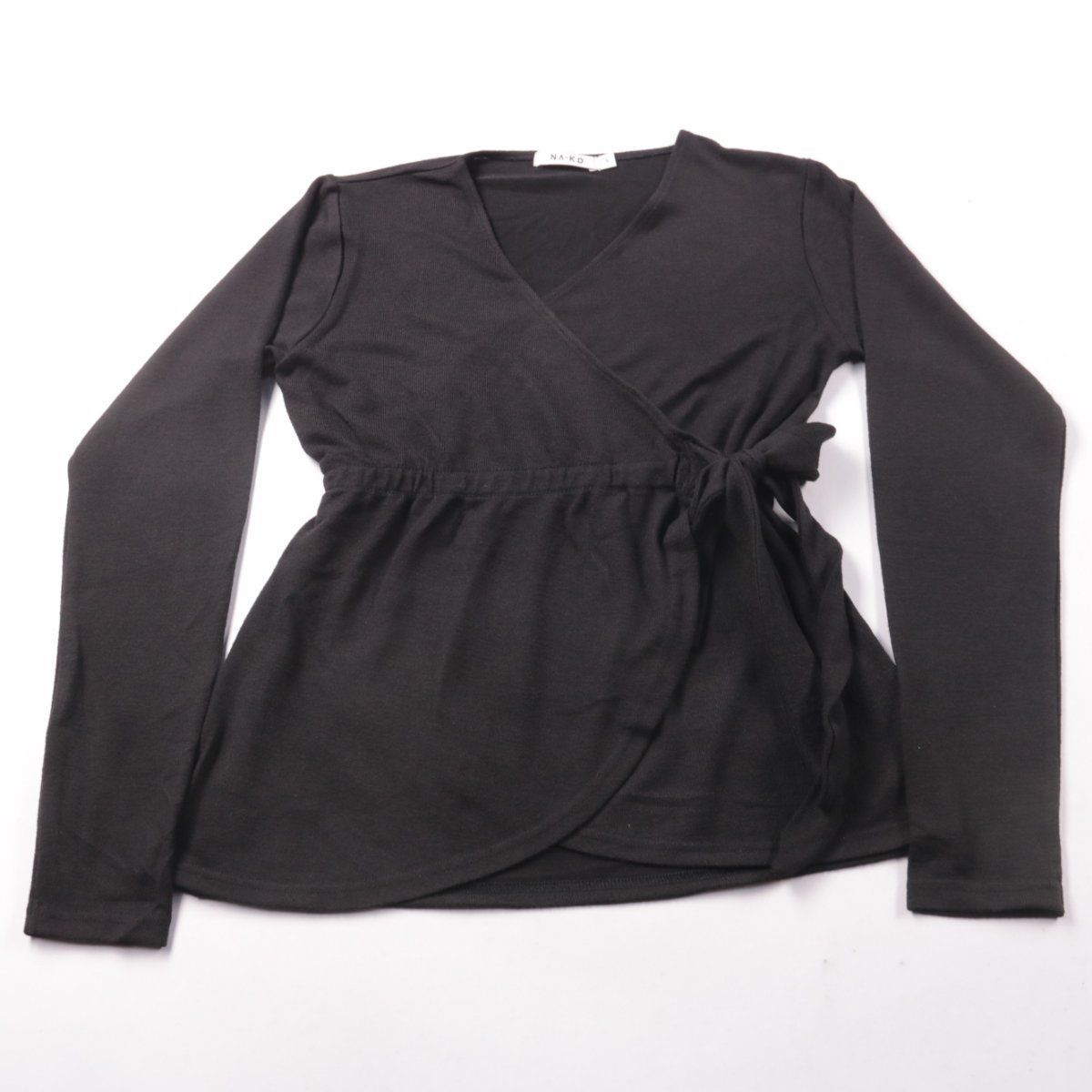 Женская кофта NA-KD в чёрном цвете с запахом и завязкой на талии, V-образный вырез и длинный рукав. Подойдёт для повседневных образов и в офис с базовыми брюками или юбкой. Эластичная ткань комфортно садится по фигуре и не сковывает движения.