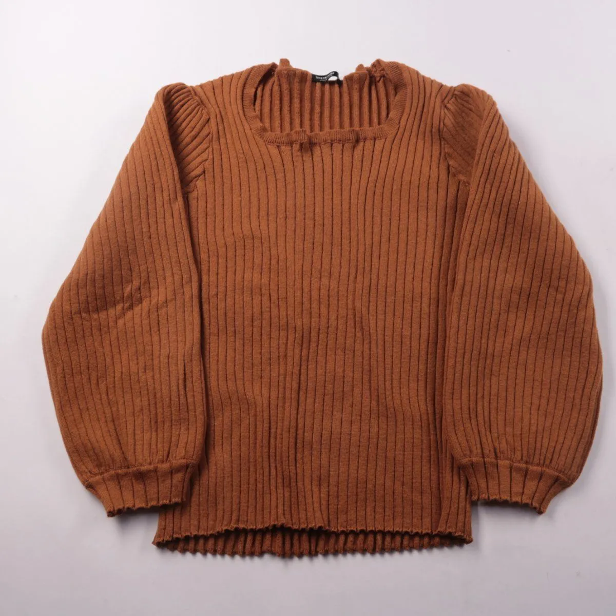 Женский джемпер SHEIN CURVE в рубчик, коричневого (карамельного) оттенка, с квадратным вырезом и объёмными рукавами. Подойдёт для повседневных образов в прохладную погоду и удобно комбинируется с джинсами или юбкой. Материал из 100% полиэстера практичен в уходе и быстро сохнет.