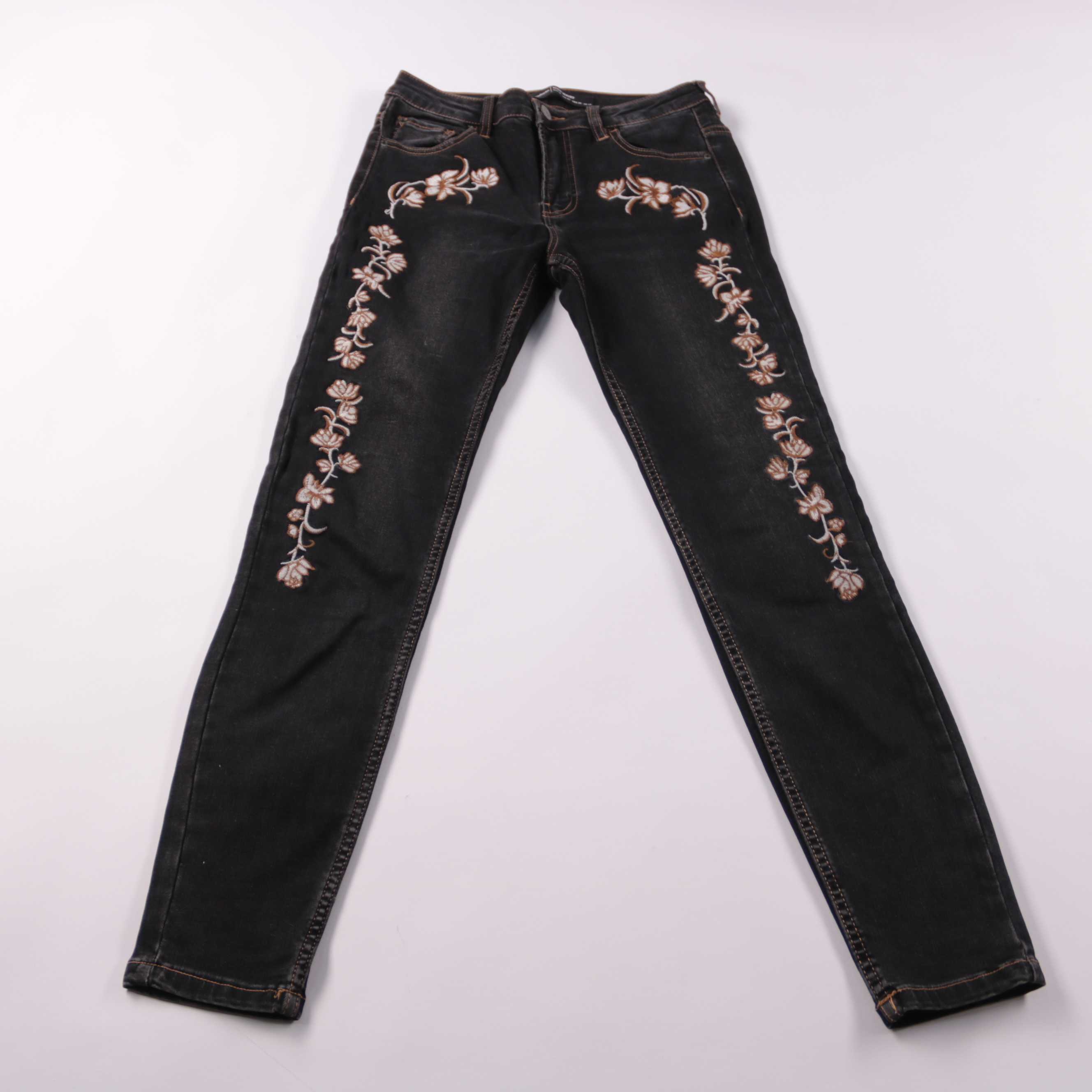 Женские джинсы Stradivarius с высокой посадкой и декоративной цветочной вышивкой по бокам. Подойдут для повседневных образов с базовыми футболками, свитерами или рубашками. Плотный деним хорошо держит форму и комфортно носится.