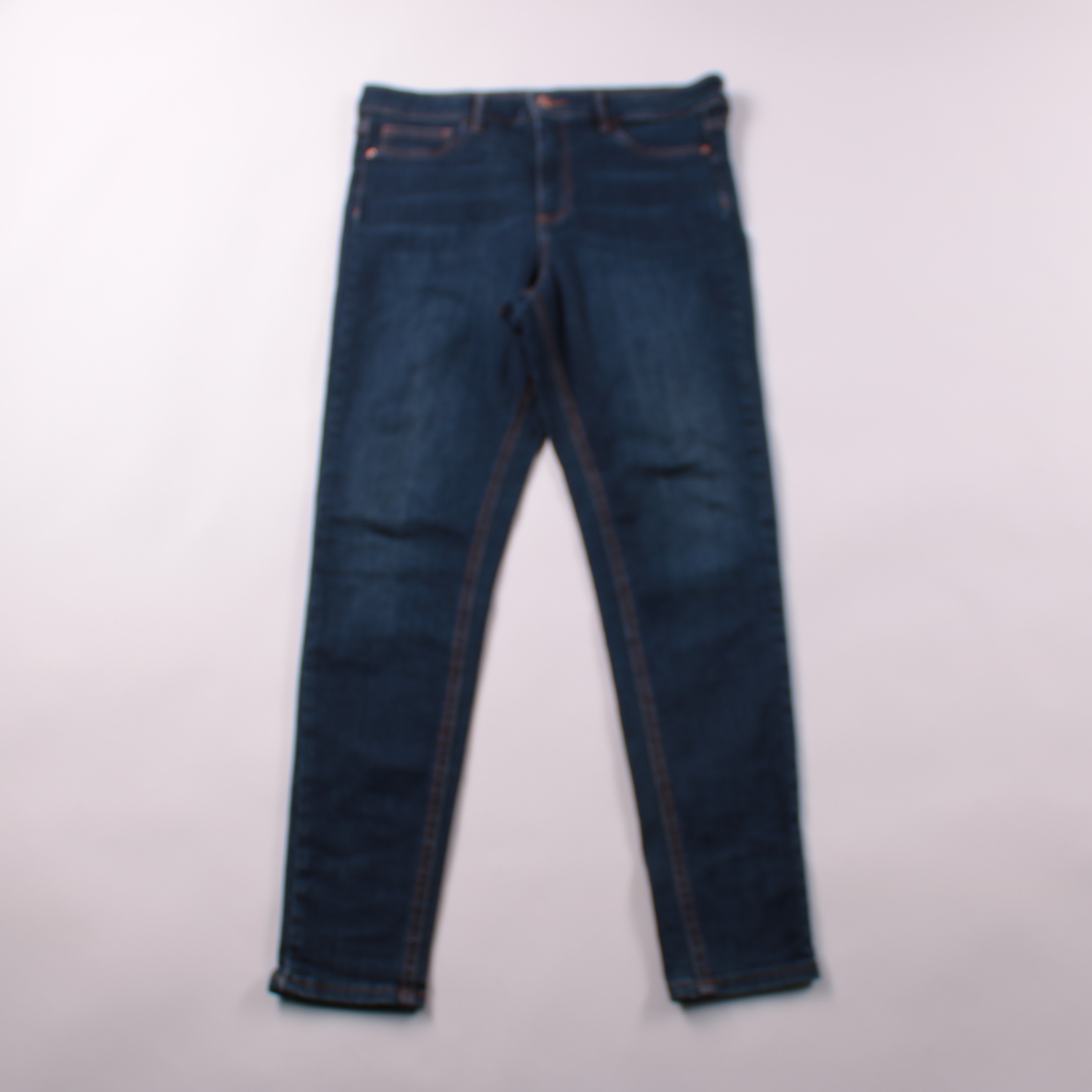 Женские джинсы F&F из тёмно-синего денима, с классической посадкой и зауженными к низу штанинами. Подойдут для повседневных образов с кедами или ботинками и базовым верхом. Плотная ткань со стрейчем комфортно садится и хорошо держит форму.