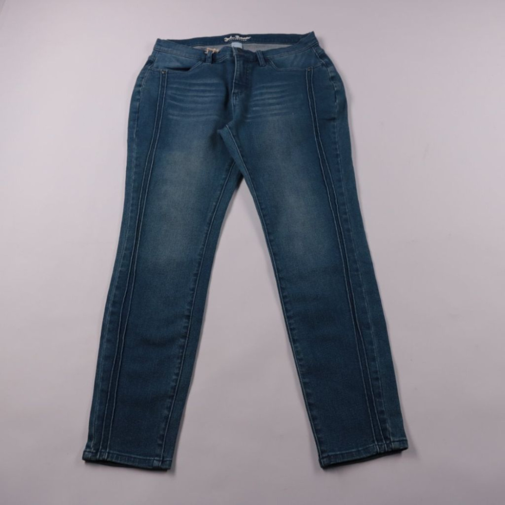 Женские джинсы John Baner из синего денима с лёгким эффектом выварки и декоративными вертикальными строчками. Подойдут на каждый день, для прогулок и офиса с нестрогим дресс-кодом. Хлопковая ткань с эластаном лучше садится по фигуре и комфортна в движе...
