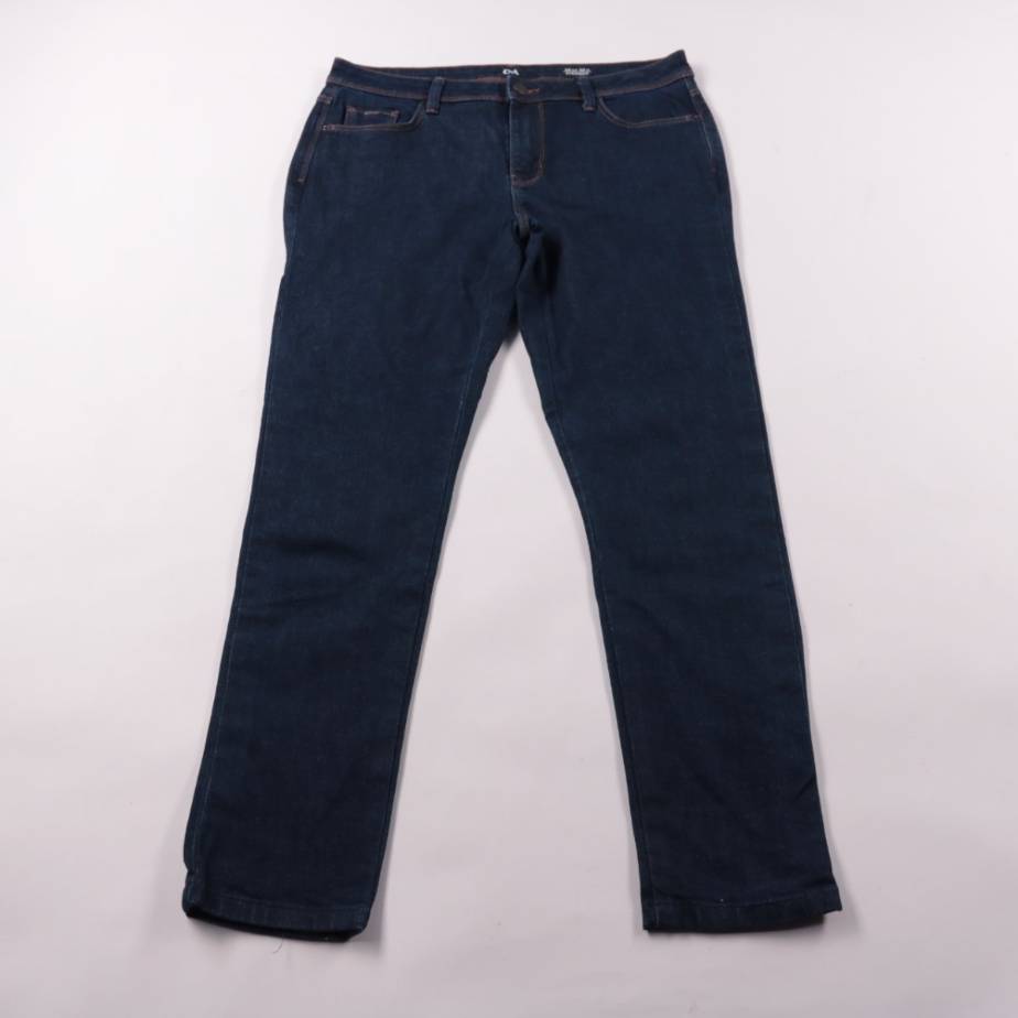 Женские джинсы C&A прямого кроя (Straight) из тёмно-синего денима. Подойдут для повседневных образов и офиса с рубашкой или свитером. Практичный плотный материал хорошо держит форму и легко сочетается с обувью на каждый день.