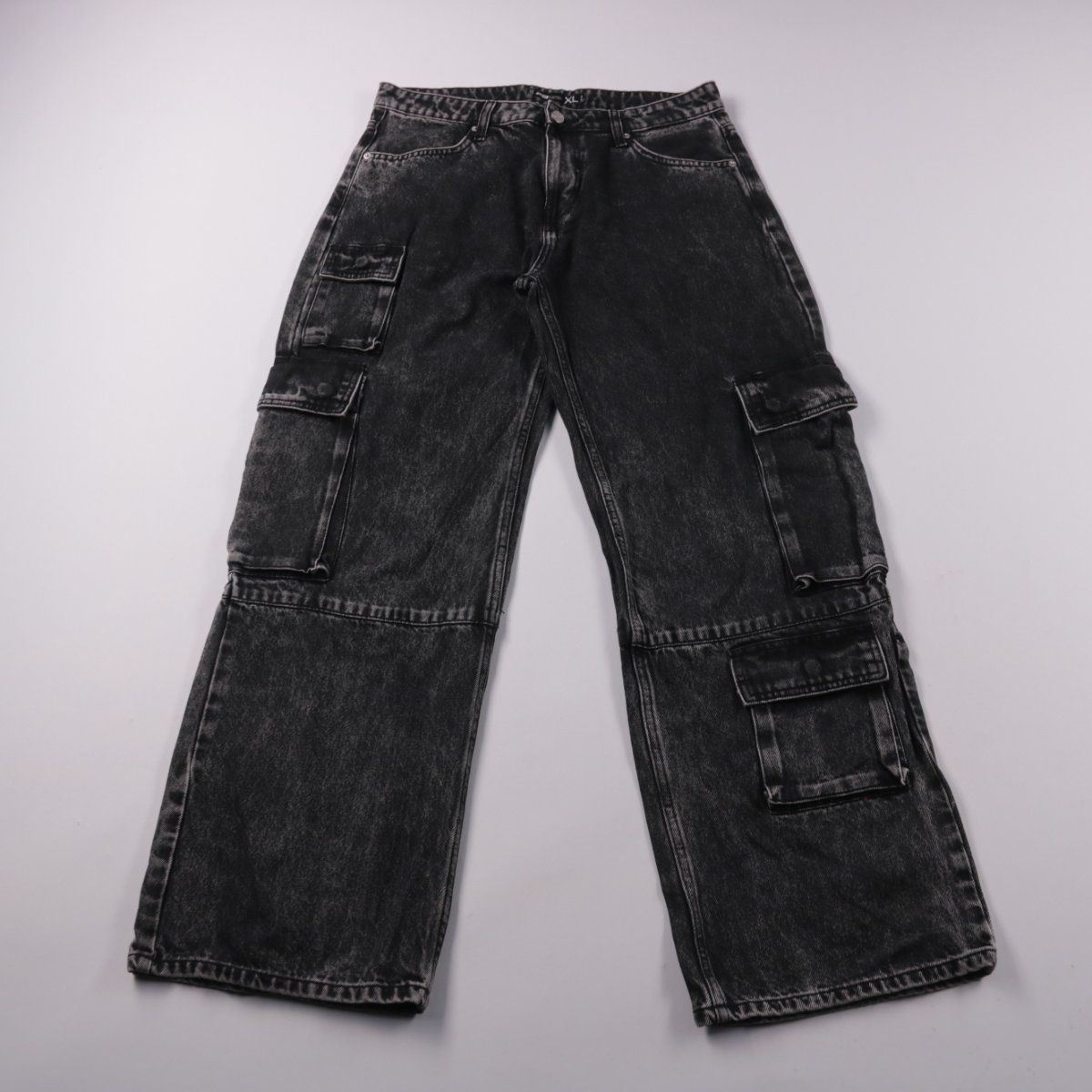 Женские джинсы-карго FB Sister из денима, цвет чёрный с эффектом варки. Подойдут для повседневных и уличных образов, хорошо сочетаются с худи, футболками и кроссовками. Практичный плюс — вместительные накладные карманы по бокам.