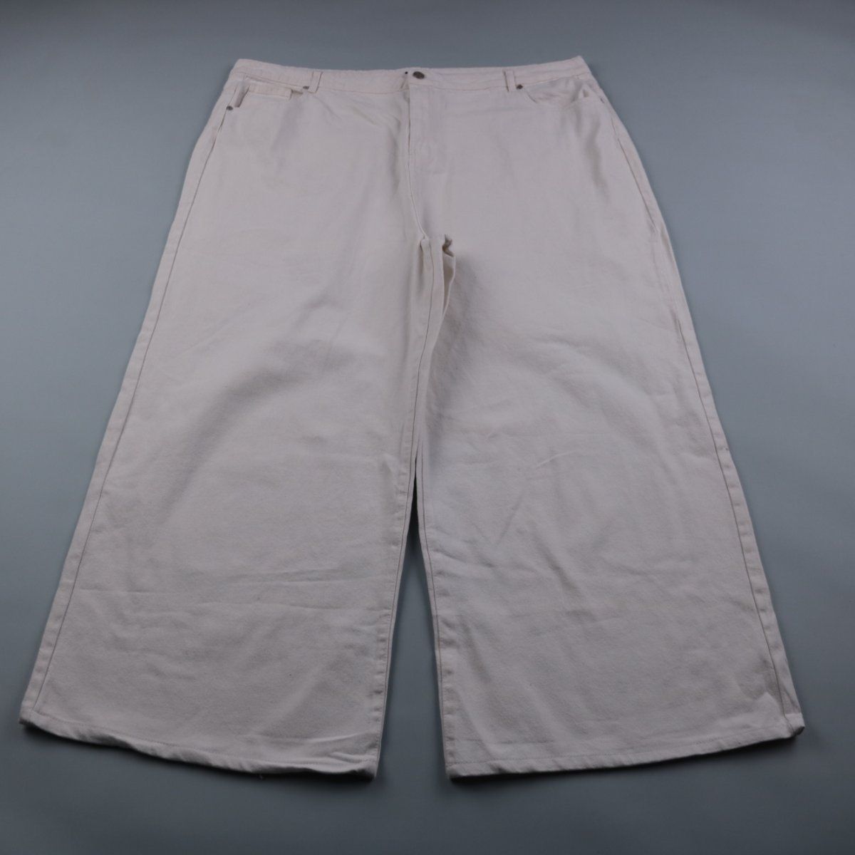 Женские джинсы Boohoo молочно-белого цвета с широкими штанинами и классическими карманами. Подойдут для повседневных образов и летних сочетаний с кедами или босоножками. Плотный деним хорошо держит форму и не просвечивает.