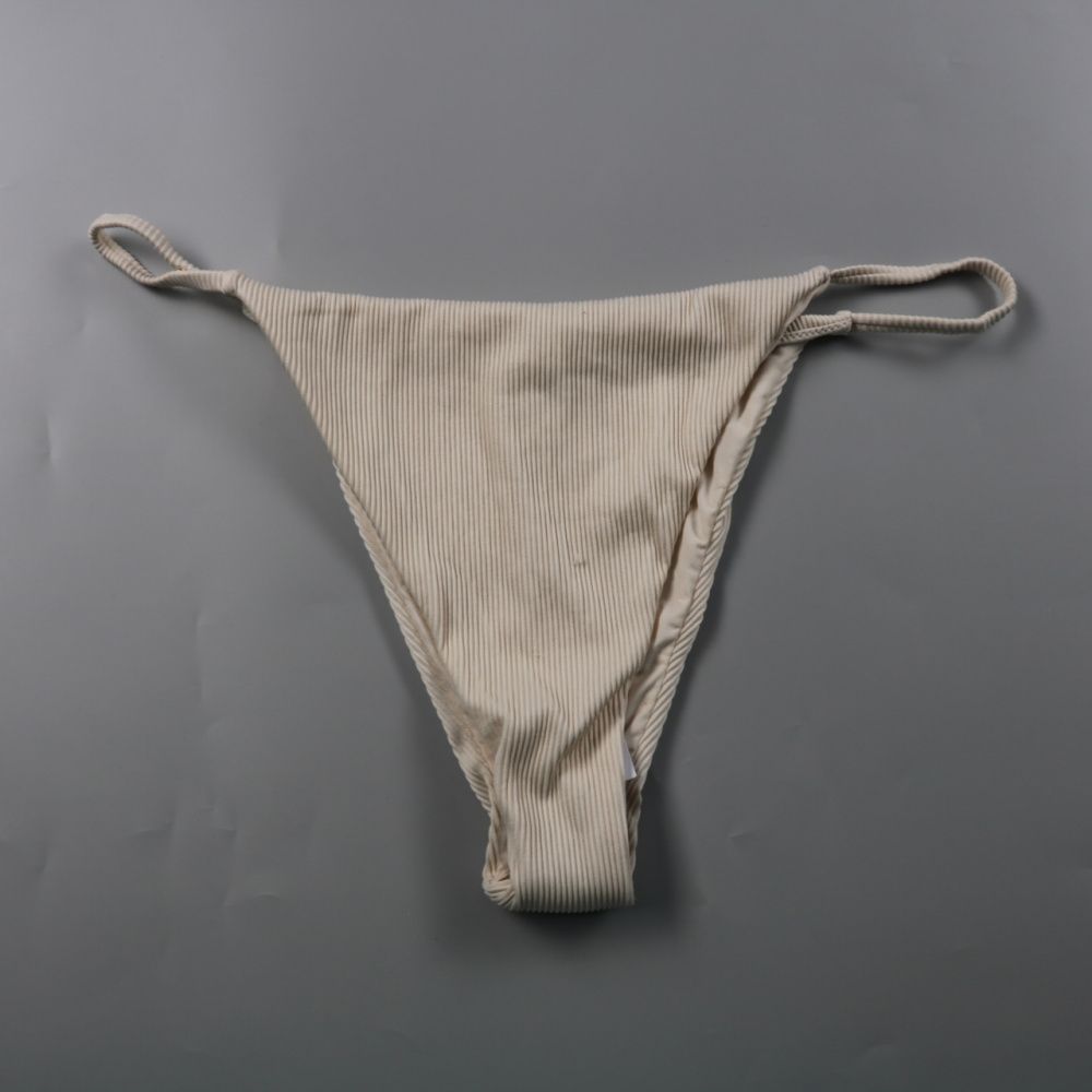 Женские плавки бикини NA-KD в рубчик, цвет off white (молочный). Подойдут для пляжа и бассейна, комфортно сидят за счёт эластичного материала. Лёгкие и быстро сохнут, удобно брать в отпуск.