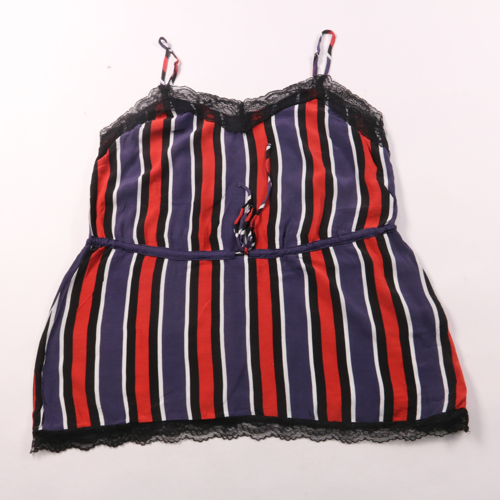 Женский топ Zara TRF на тонких бретелях в полоску, с кружевной отделкой по верху и низу. Подойдёт для летних образов и как бельевой топ под жакет или кардиган. Лёгкий, почти не занимает места и быстро сохнет.