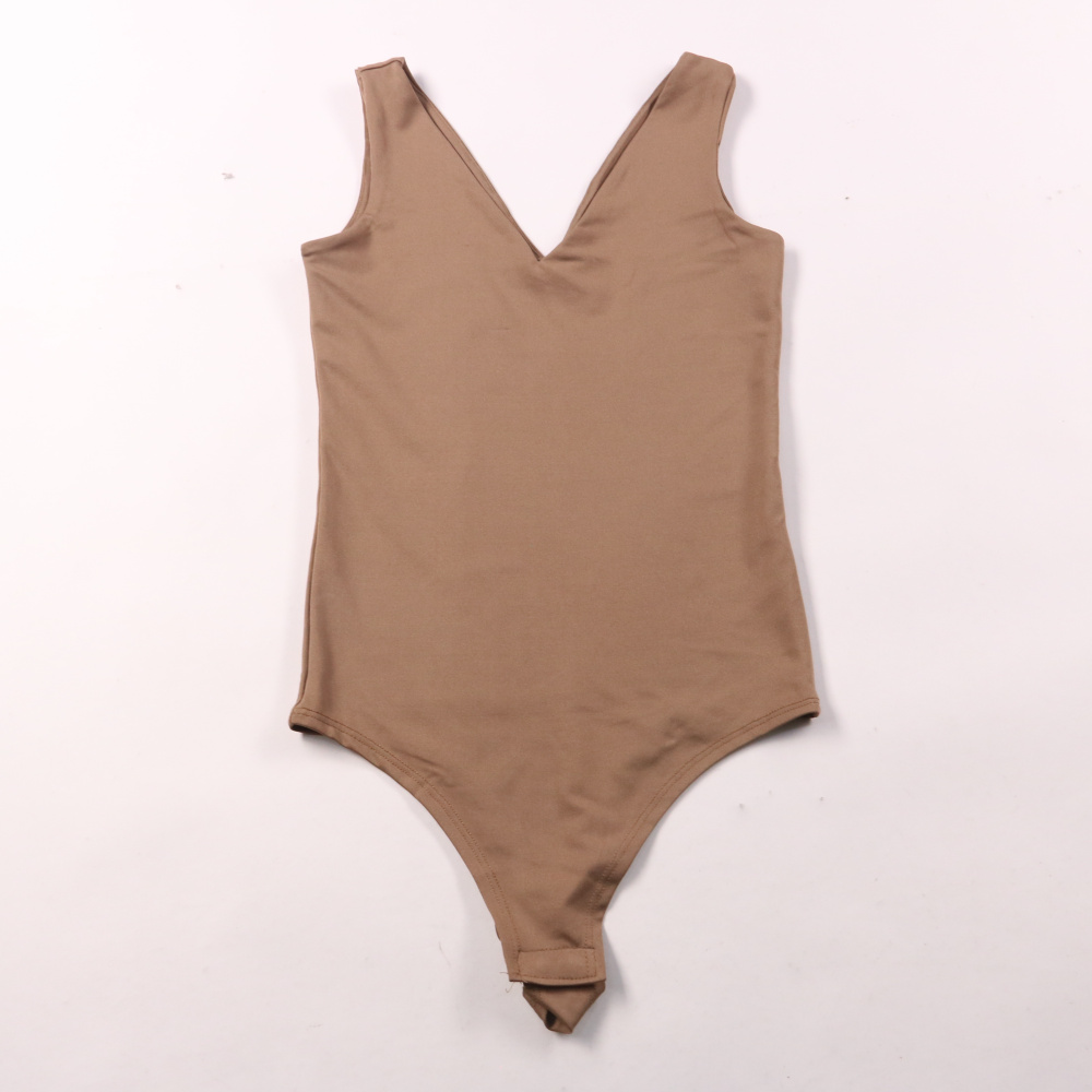 Боди Amisu бежевого цвета с V-образным вырезом и широкими бретелями. Подойдёт для базовых образов под жакет, кардиган или как нижний слой в прохладную погоду. Эластичный материал хорошо тянется и удобно сидит по фигуре.