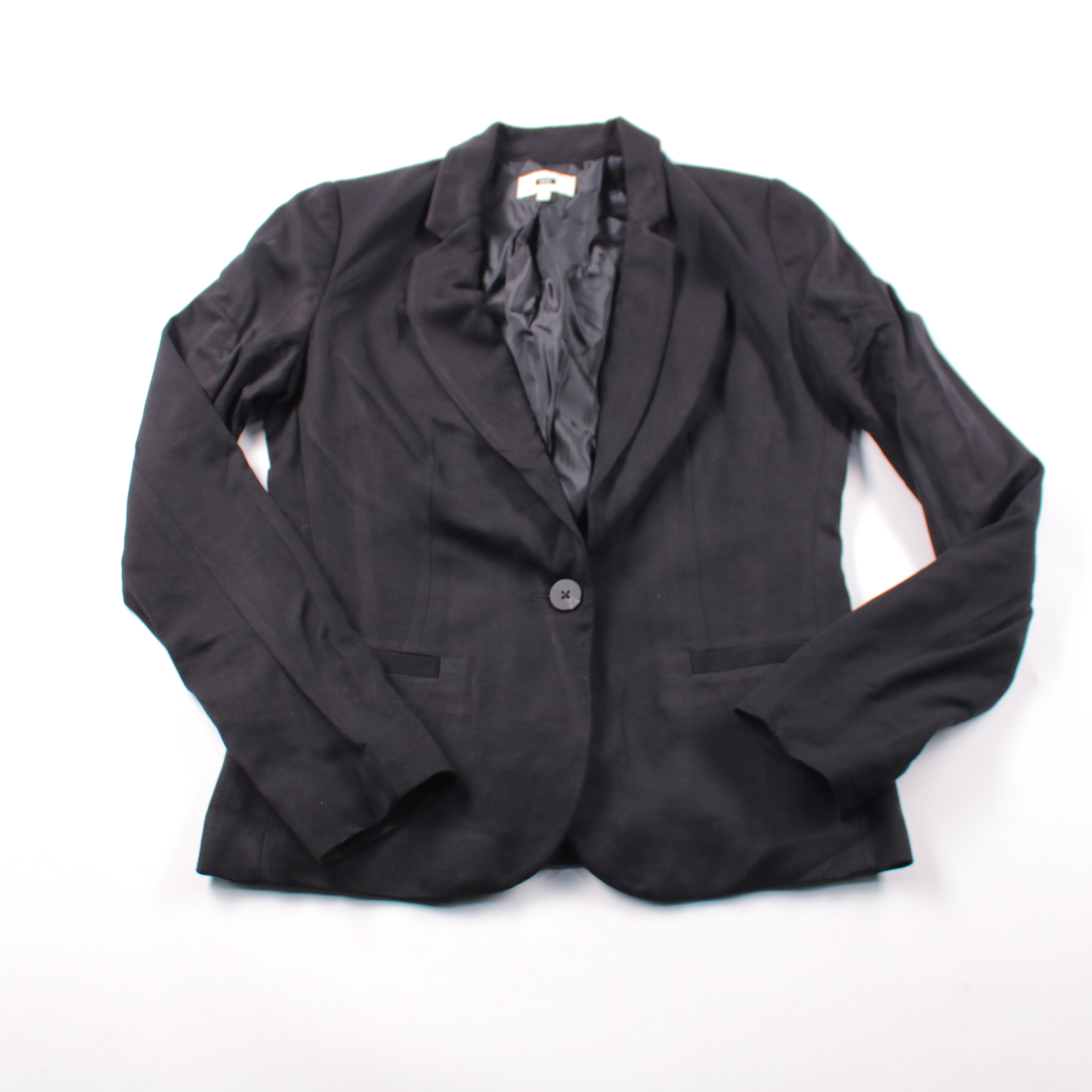 Женский чёрный пиджак WE с классическими лацканами и застёжкой на одну пуговицу. Подойдёт для офиса, собеседований и строгих повседневных образов, легко сочетается с брюками, юбкой или платьем. Практичная деталь — гладкая подкладка, благодаря которой у...