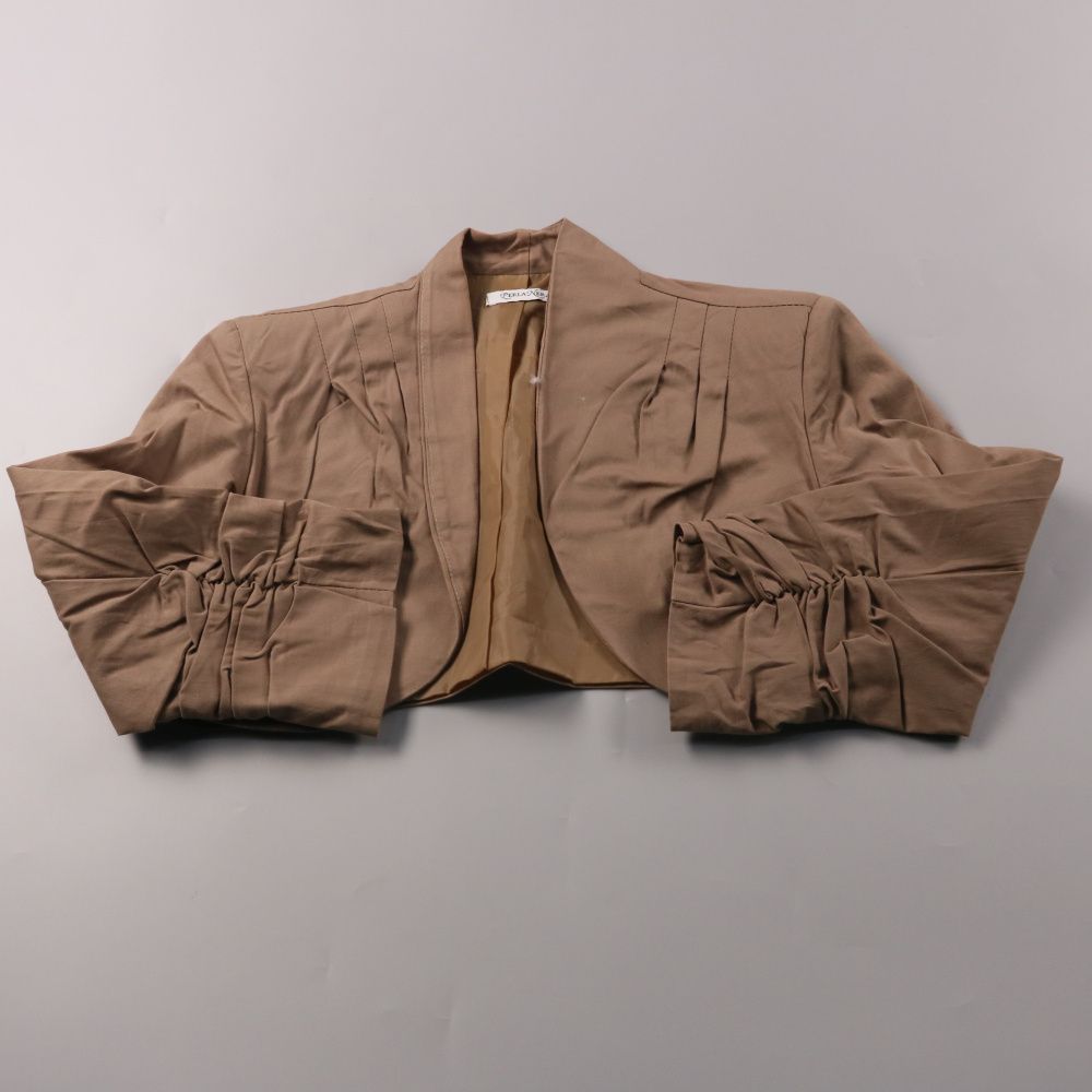 Укороченный пиджак Perla Nera в коричневом цвете с драпировкой и объёмными рукавами-буфами. Подойдёт для образов на выход и для повседневных комплектов с платьями или брюками с высокой талией. Плотный хлопковый материал с эластаном лучше держит форму и...