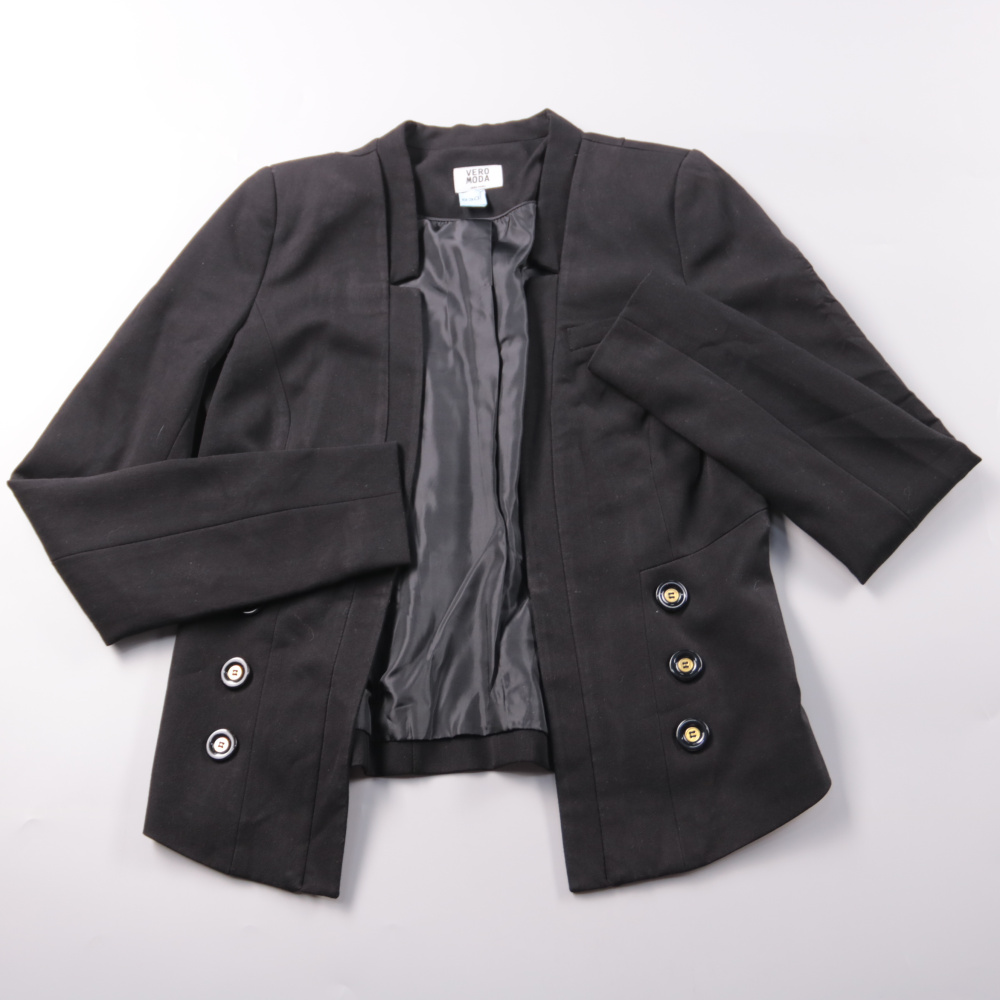 Женский пиджак Vero Moda чёрного цвета, укороченный, с декоративными пуговицами спереди. Подойдёт для офиса и повседневных образов с брюками, джинсами или юбкой. Лёгкая подкладка делает посадку более аккуратной и комфортной.