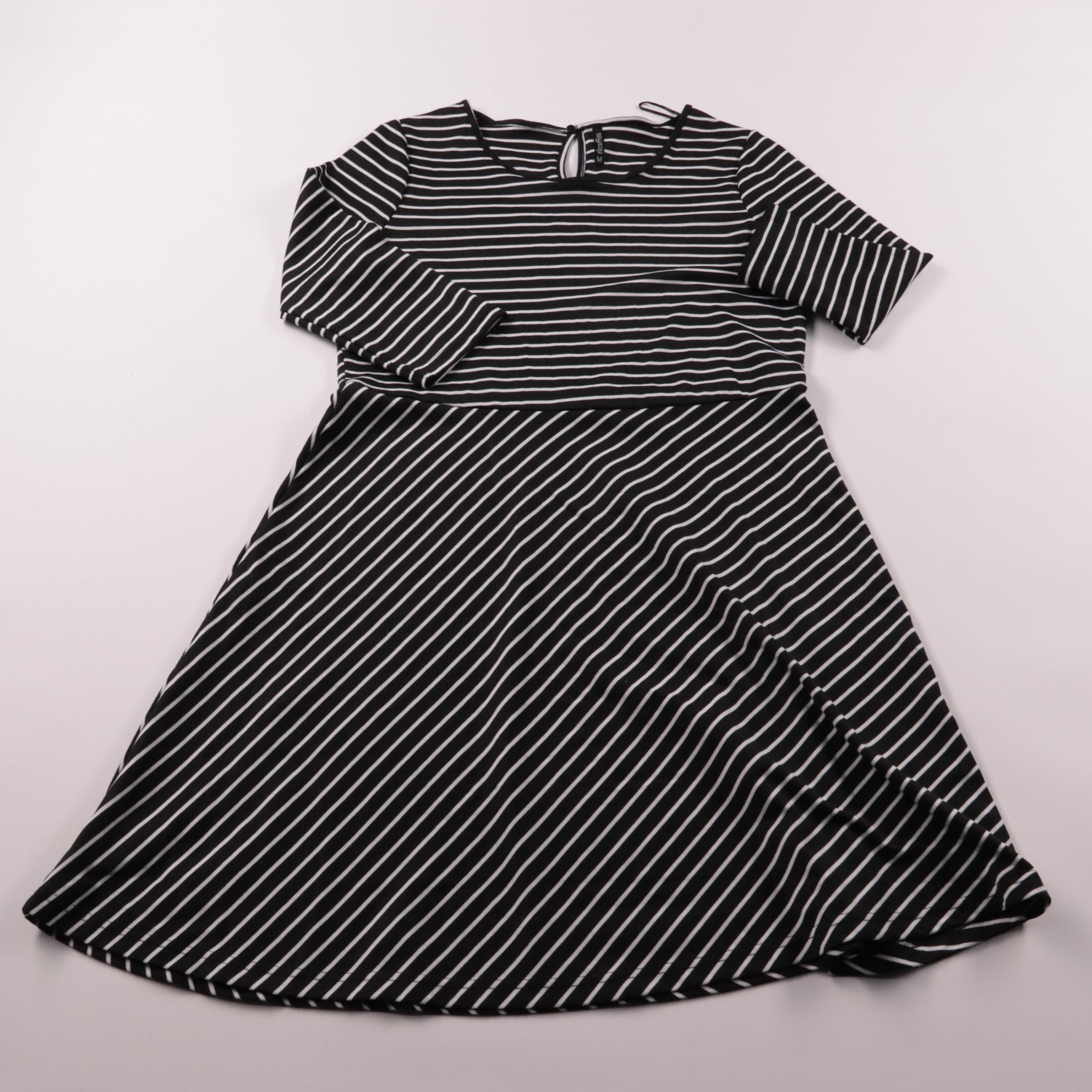 Повседневное платье NKD в чёрно-белую полоску, с рукавом 3/4 и лёгким расклешением к низу. Подойдёт для офиса и на каждый день, хорошо сочетается с кардиганом или жакетом. Практичный плюс — эластичная ткань почти не мнётся и комфортно садится по фигуре.