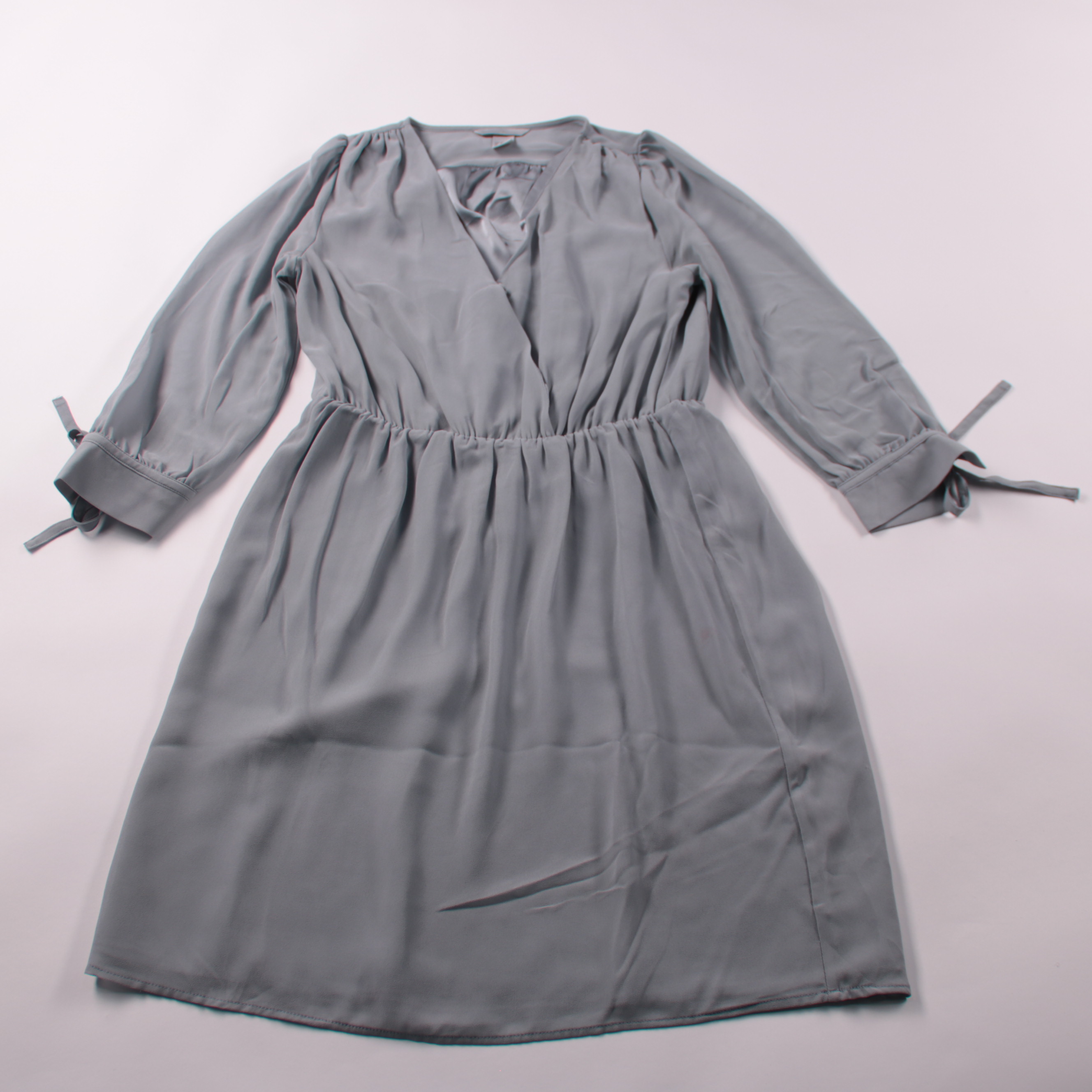 Платье H&M серого цвета с запахом и мягкой сборкой на талии. Подойдёт для повседневных выходов и офиса, хорошо смотрится с ботильонами или лоферами. Длинный рукав с манжетами делает образ аккуратным и удобным в носке.