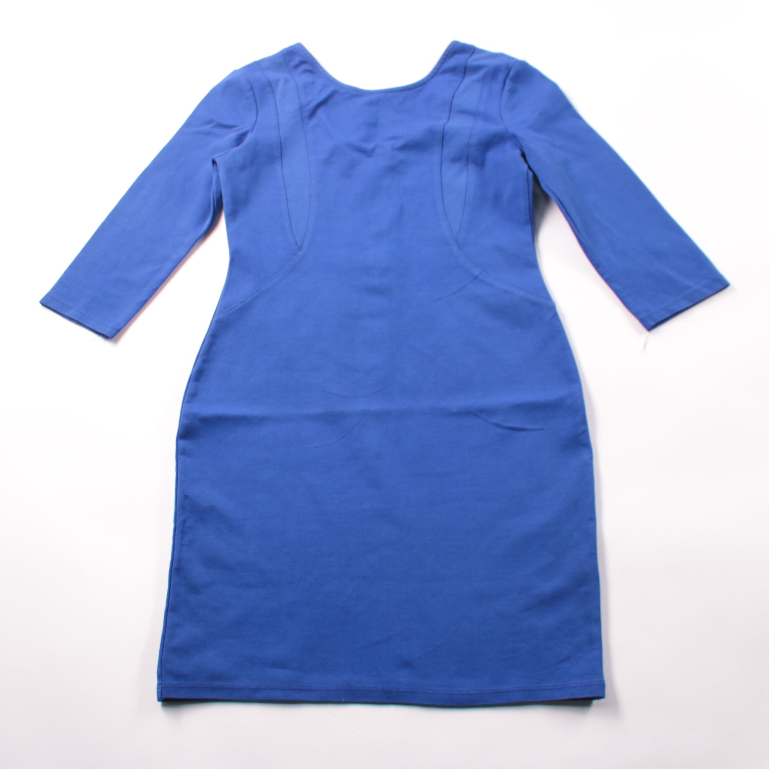 Повседневное платье Amisu насыщенного синего цвета с рукавом 3/4 и вырезом-лодочкой. Приталенный крой с рельефными швами хорошо подходит для офиса и городских выходов. Плотный эластичный материал комфортно садится по фигуре и не сковывает движения.