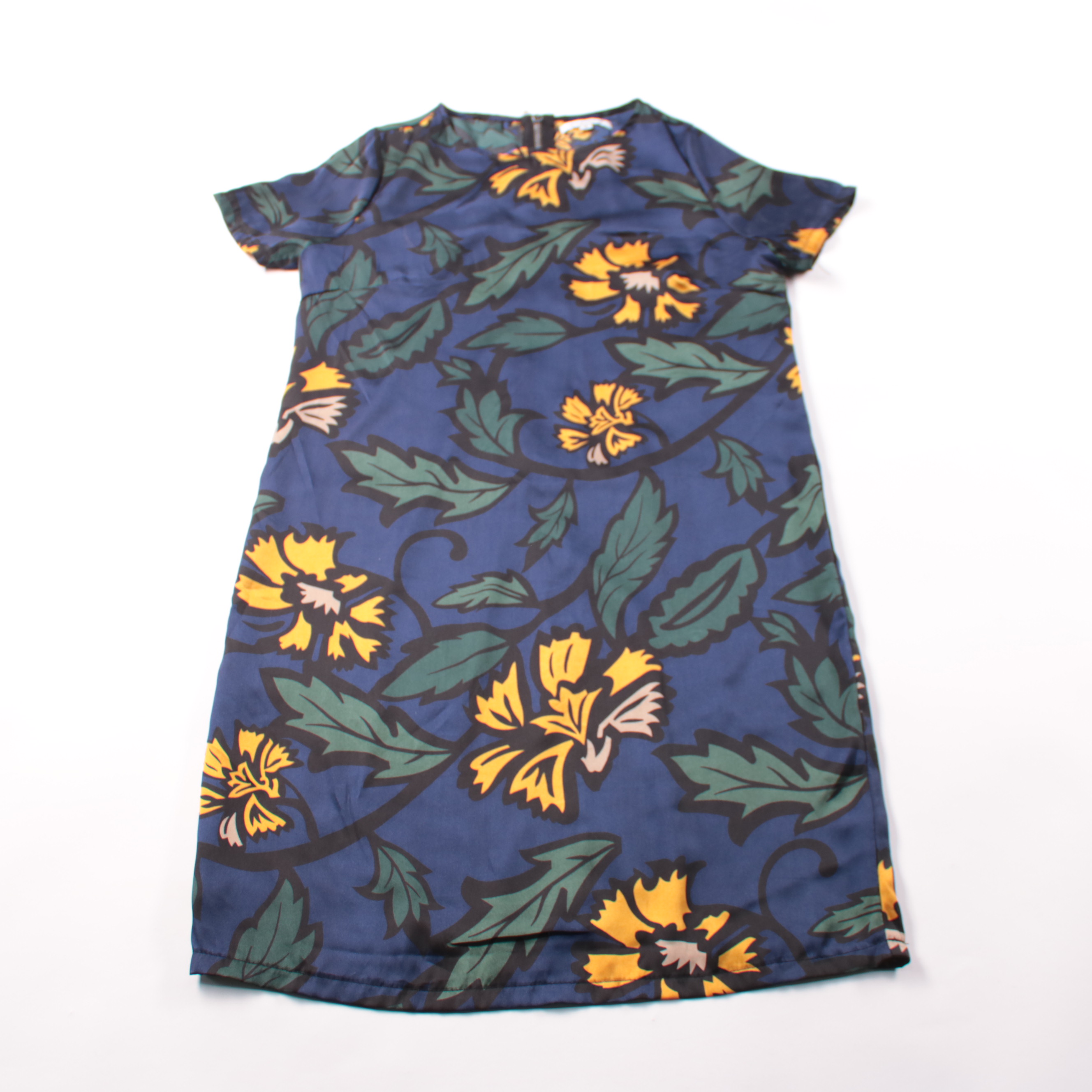 тёмно-синий с жёлто-зелёным цветочным принтом