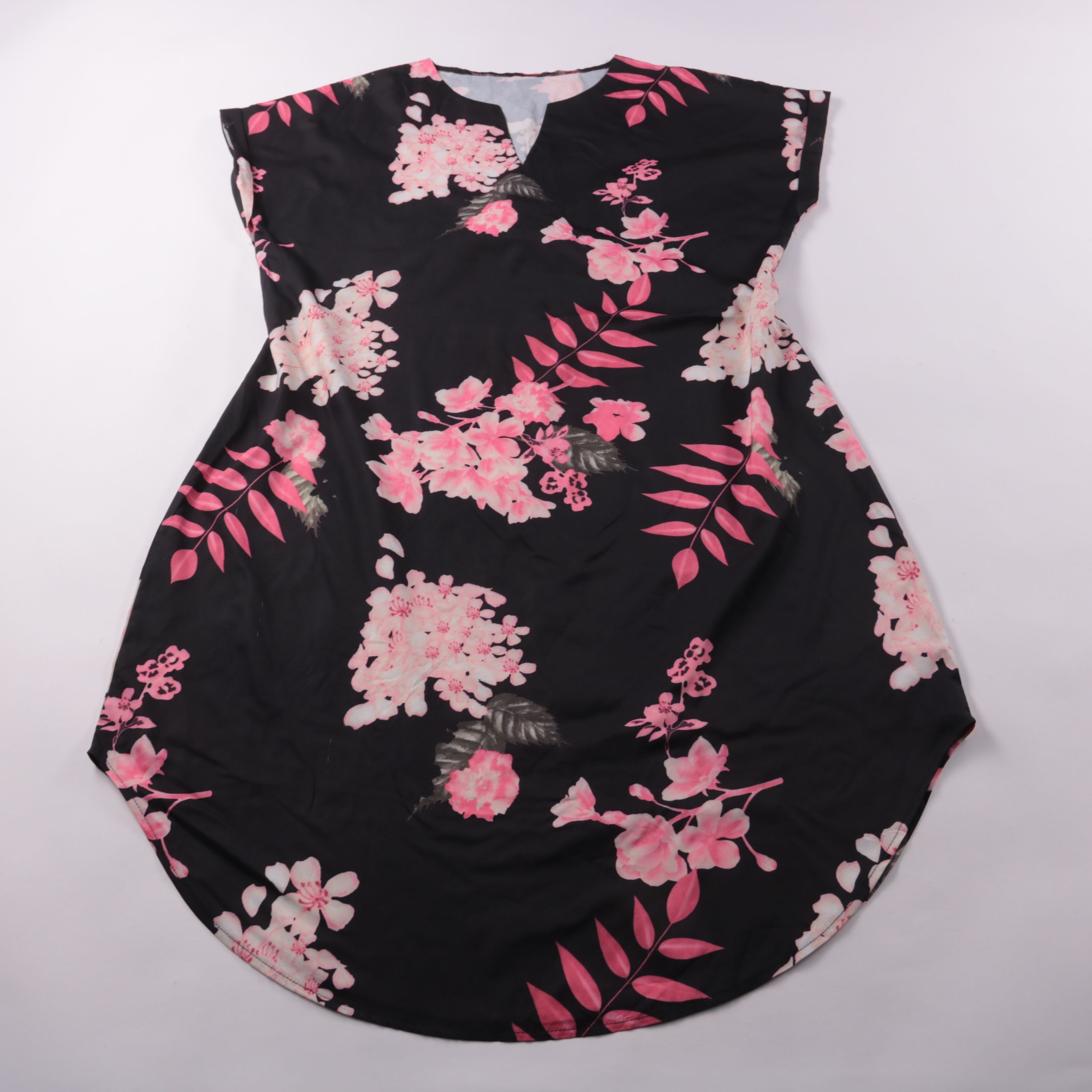 Лёгкое повседневное платье Shein с цветочным принтом на чёрном фоне и V-образным вырезом. Подойдёт для прогулок и отдыха в тёплую погоду, хорошо смотрится с босоножками или кедами. Материал из 100% полиэстера почти не мнётся и быстро сохнет.