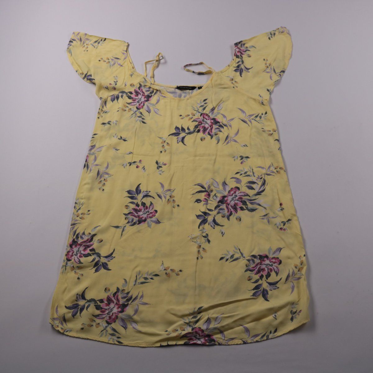 Летнее платье Peacocks светло-жёлтого цвета с цветочным принтом и короткими рукавами. Подойдёт для прогулок и повседневных выходов в тёплую погоду. Лёгкая вискоза хорошо дышит и комфортно носится.