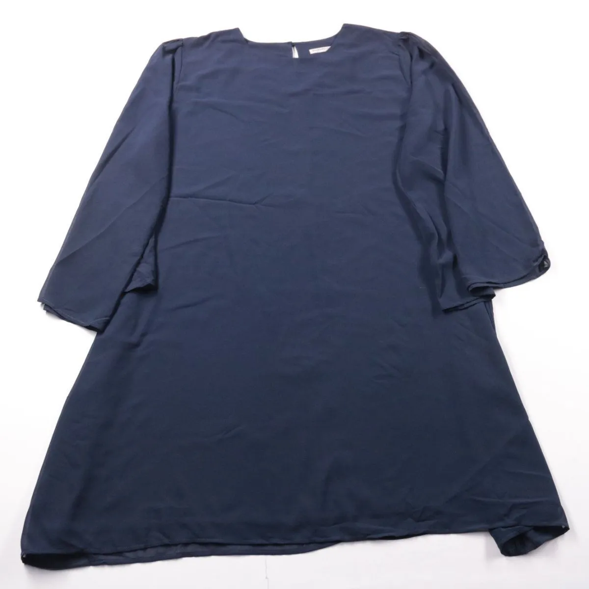 Повседневное платье GlamorouS Curve тёмно-синего цвета, свободного кроя с рукавами 3/4. Подойдёт для офиса и на каждый день, легко сочетается с лодочками или ботильонами. Ткань практически не мнётся и комфортно сидит на фигуре.