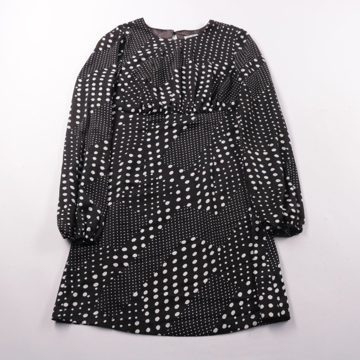 Повседневное платье Chi Chi London чёрного цвета с белым принтом в горох и длинными объёмными рукавами. Подойдёт для офиса или повседневных выходов, хорошо смотрится с ботильонами и лоферами. Практичный плюс — ткань почти не мнётся и легко сочетается с базовыми вещами.