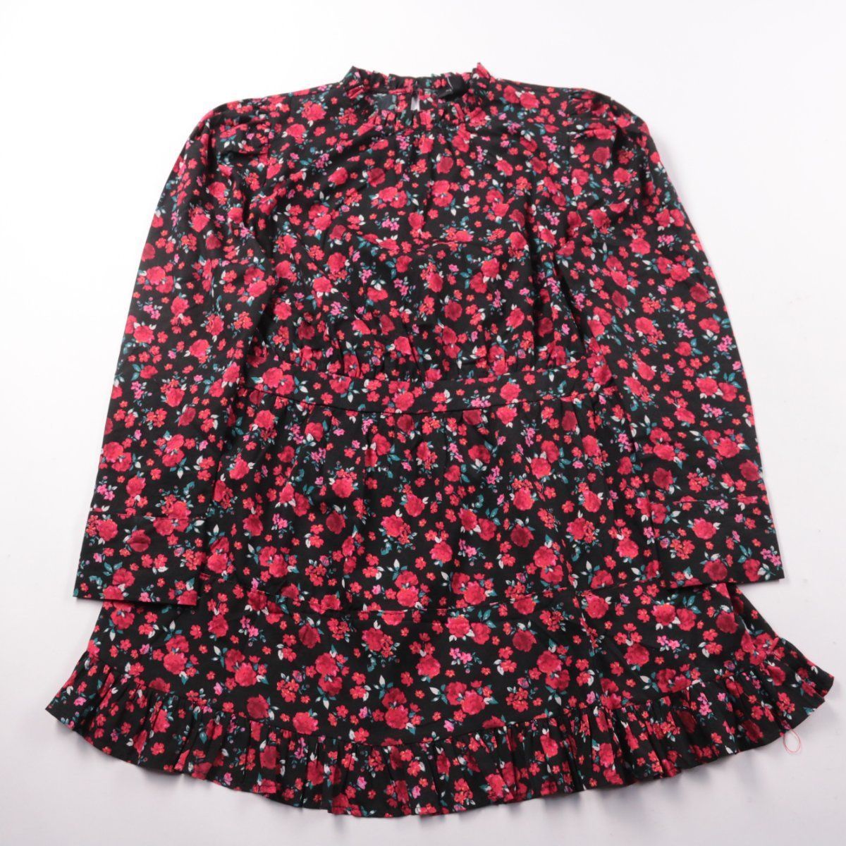 Повседневное платье New Look с цветочным принтом на чёрном фоне, длинными рукавами и отрезной талией. Подойдёт для прогулок и на каждый день в межсезонье, хорошо сочетается с ботильонами или кедами. Полиэстеровая ткань практична в уходе и меньше мнётся.