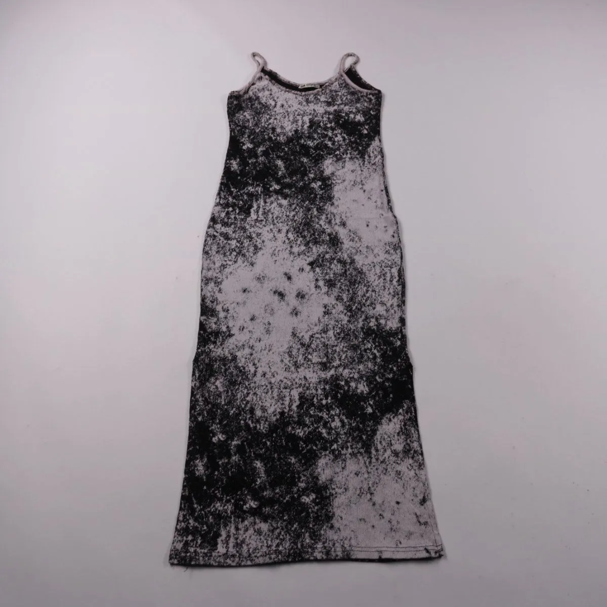 Женское повседневное платье-комбинация на тонких бретелях с черно-белым абстрактным принтом. Подойдёт для летних прогулок и отдыха, можно носить как самостоятельное платье или в многослойных образах. Трикотажная ткань тянется и комфортно садится по фигуре.