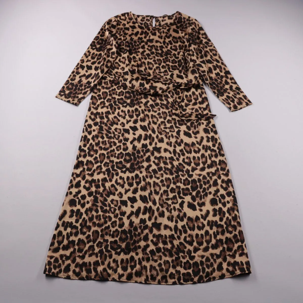Повседневное платье Only с леопардовым принтом, длина миди, рукава 3/4 и небольшой вырез сзади. Подойдёт для офиса и на каждый день, легко сочетается с однотонными туфлями или ботильонами. Практичный плюс — материал из полиэстера почти не мнётся и быстро сохнет.