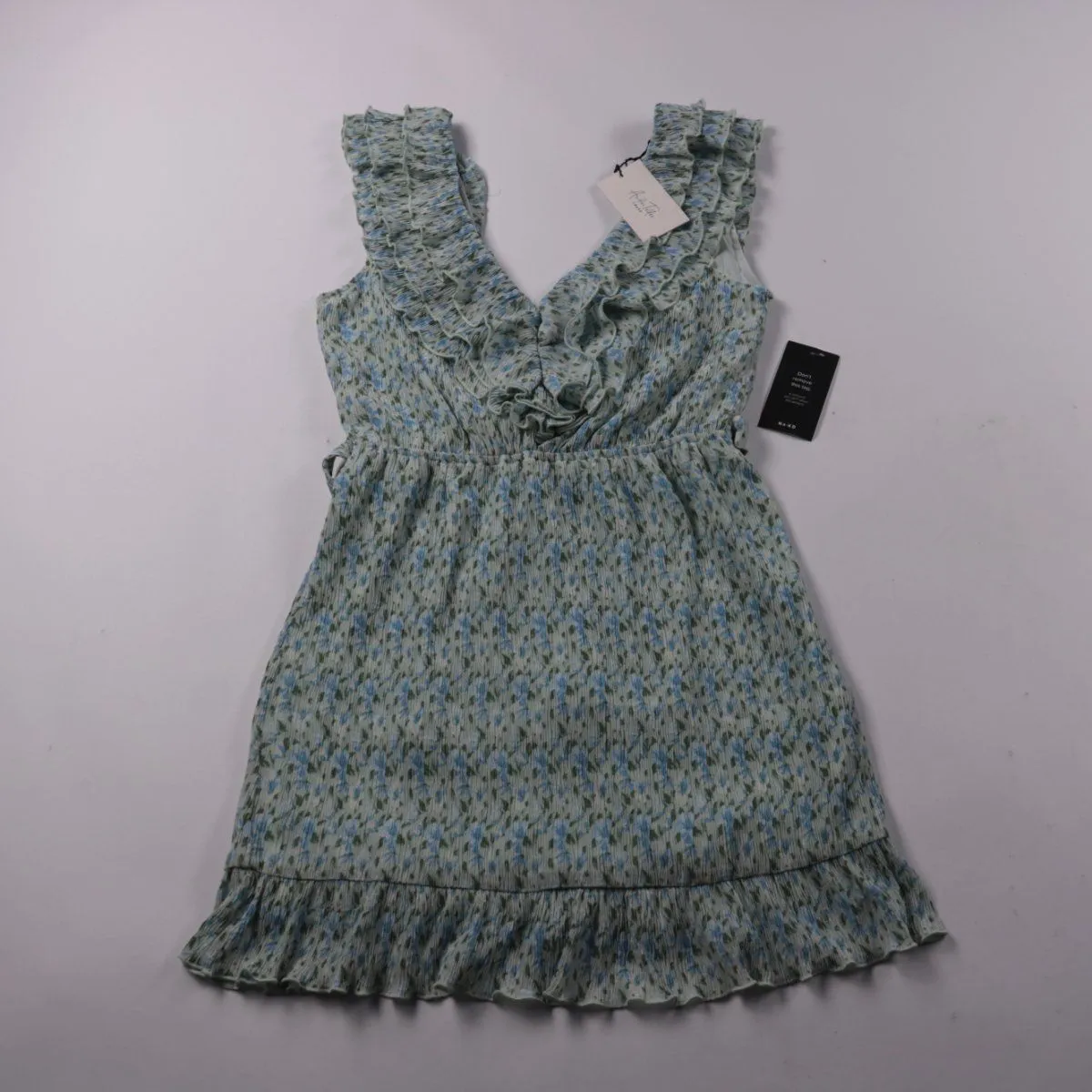 Повседневное платье NA-KD с V-образным вырезом и рюшами на груди, в цветочный принт. Подойдёт для летних прогулок и отпуска благодаря лёгкой ткани и свободному силуэту. Практичный плюс — материал из полиэстера, быстро сохнет и не требует сложного ухода.