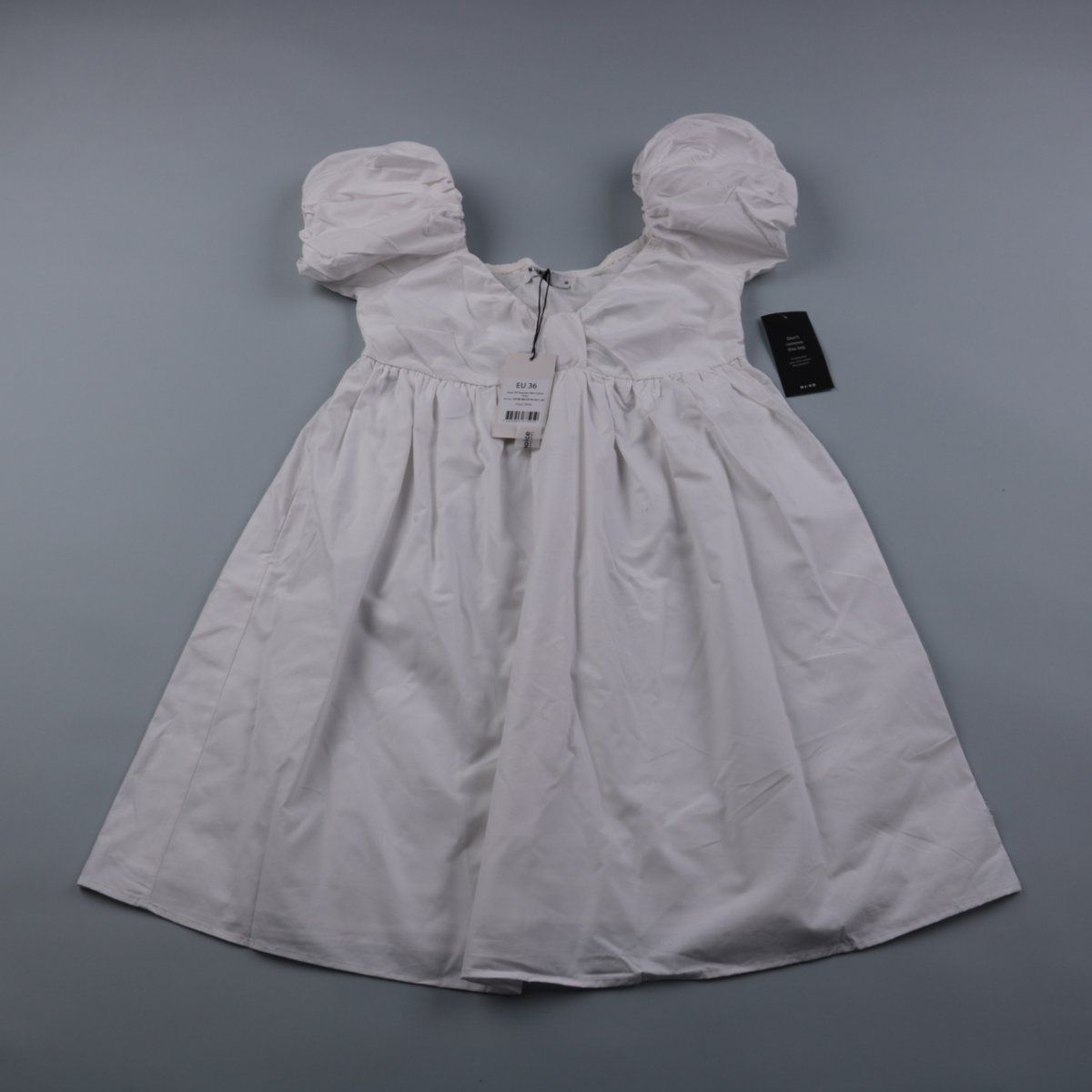 Повседневное платье NA-KD белого цвета с пышными рукавами и свободной юбкой. Подойдёт для летних прогулок и отдыха. Натуральный хлопок комфортен в жару и легко стирается.