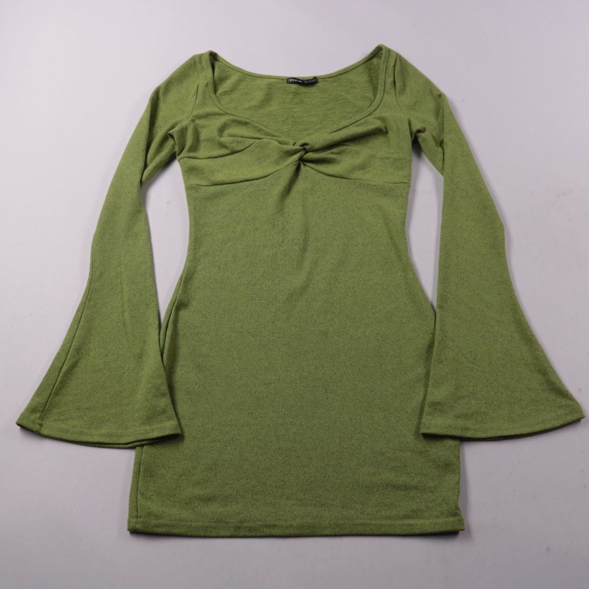 Повседневное платье Shein зелёного цвета из тянущегося трикотажа, с глубоким вырезом и декоративным перекрутом на груди. Подойдёт для прогулок и повседневных образов в прохладную погоду. Эластичный материал хорошо садится по фигуре и не сковывает движения.