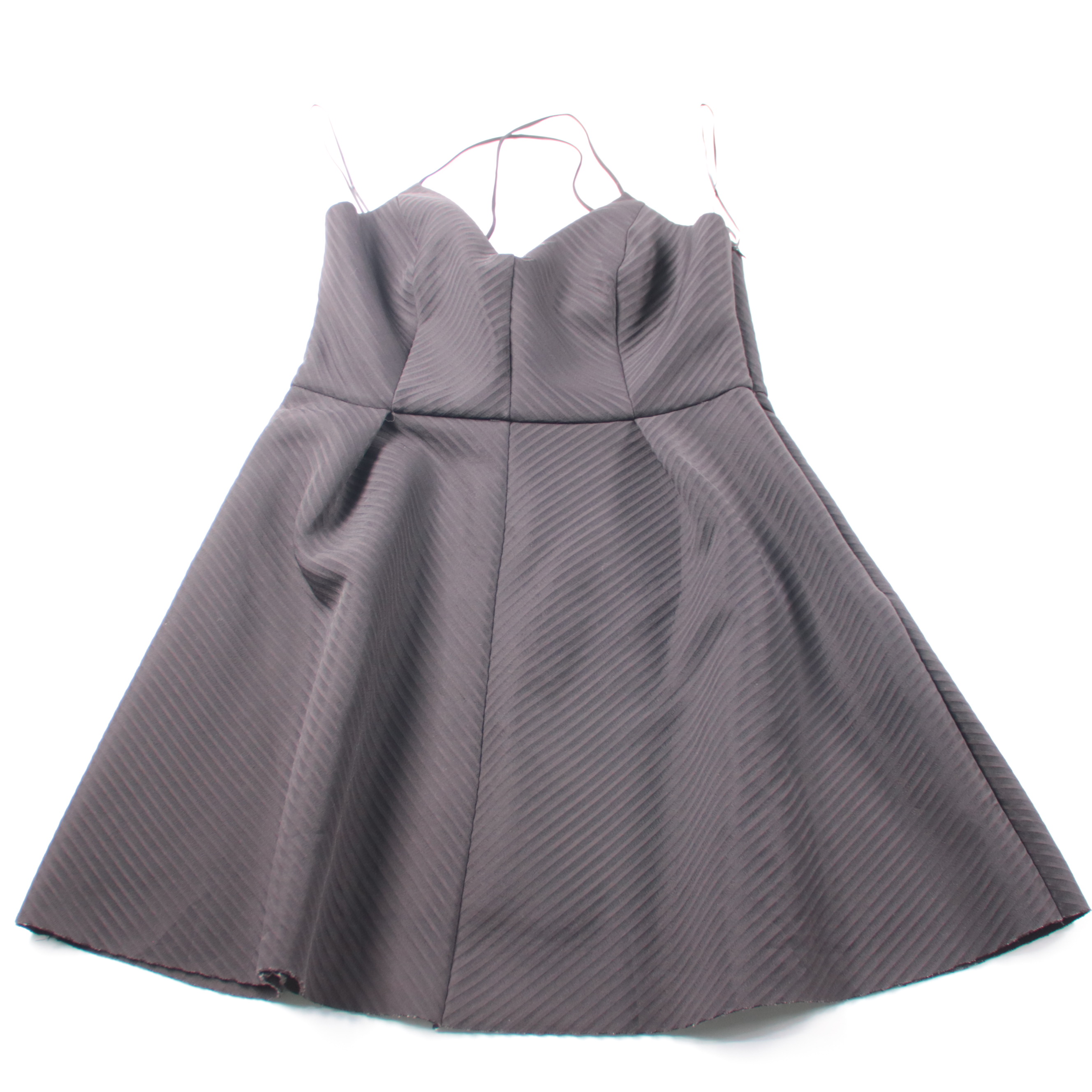Вечернее платье River Island в чёрном цвете, длина миди, на тонких бретелях и с фактурой в диагональную полоску. Подойдёт для вечеринок и торжеств, хорошо смотрится с каблуками и лаконичными аксессуарами. Плотная ткань держит форму и подчёркивает силуэт.