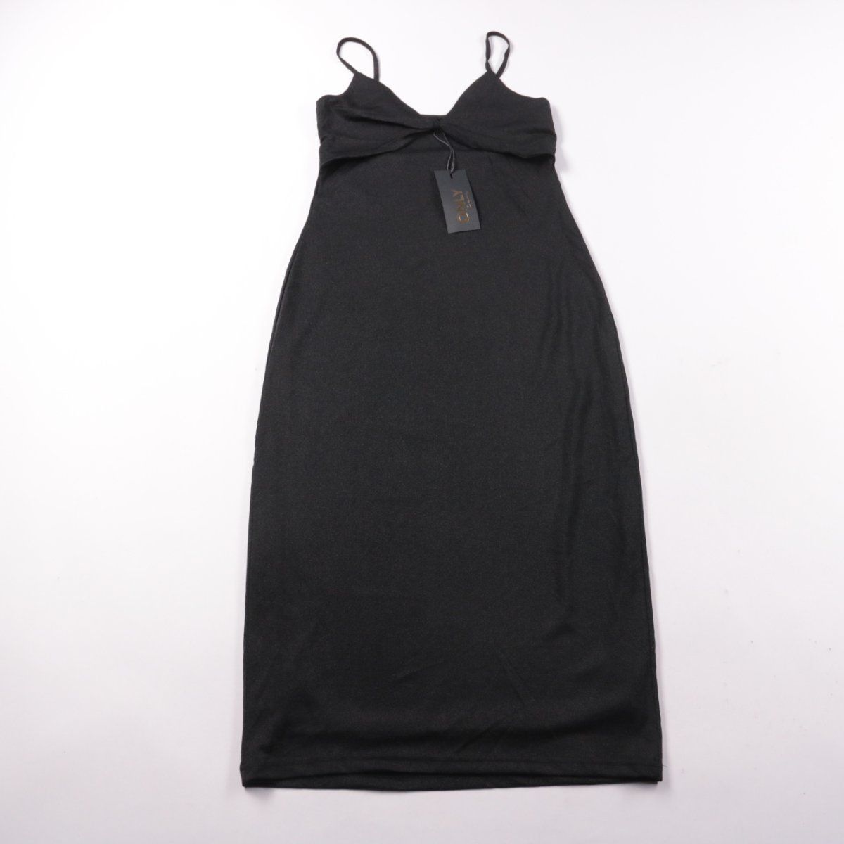 Черное платье Only на тонких бретелях с легким эффектом глиттера и драпировкой на груди. Подойдет для вечерних выходов и мероприятий, легко сочетается с жакетом и обувью на каблуке. Ткань тянется и комфортно садится по фигуре.
