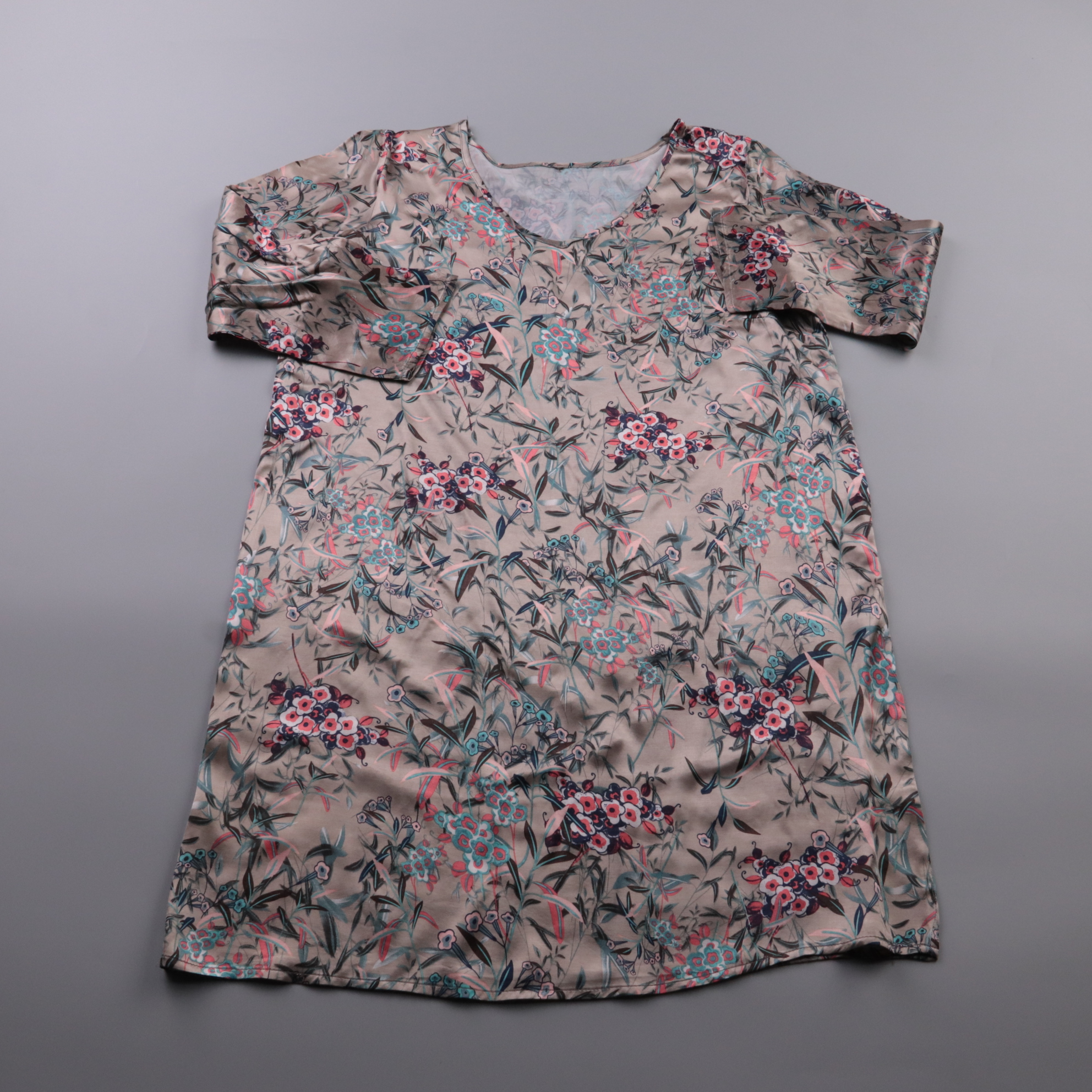 Лёгкая женская блузка с цветочным принтом и коротким рукавом, свободный прямой крой. Подойдёт для лета и тёплой весны, хорошо смотрится с джинсами или юбкой. Ткань тонкая и быстро сохнет после стирки.