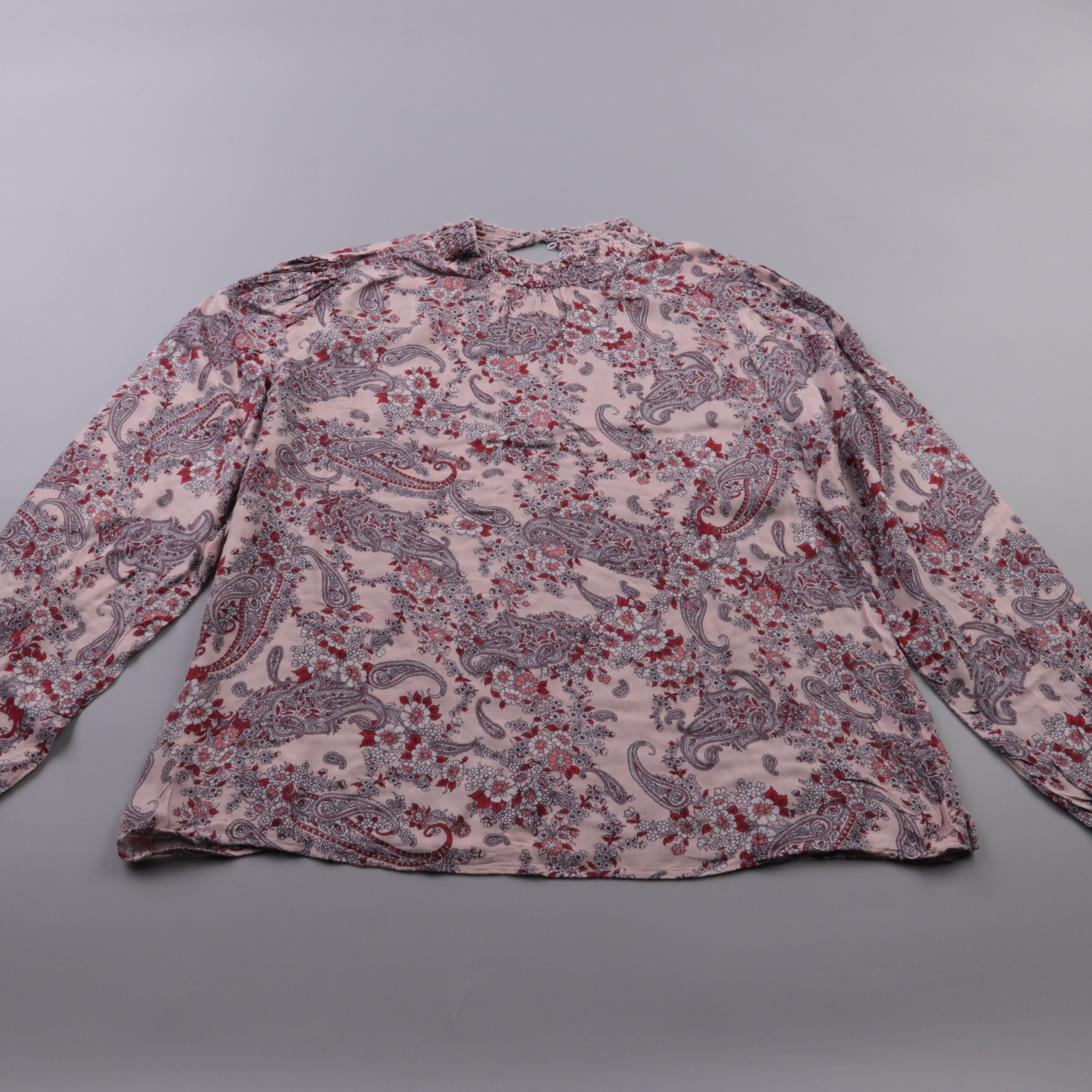 Блузка Orsay с длинным рукавом и нежным пейсли-цветочным принтом в розово-серо-красной гамме. Подойдёт для офиса и на каждый день, хорошо смотрится с джинсами или однотонной юбкой. Лёгкая ткань комфортна в носке и почти не занимает места в сумке.