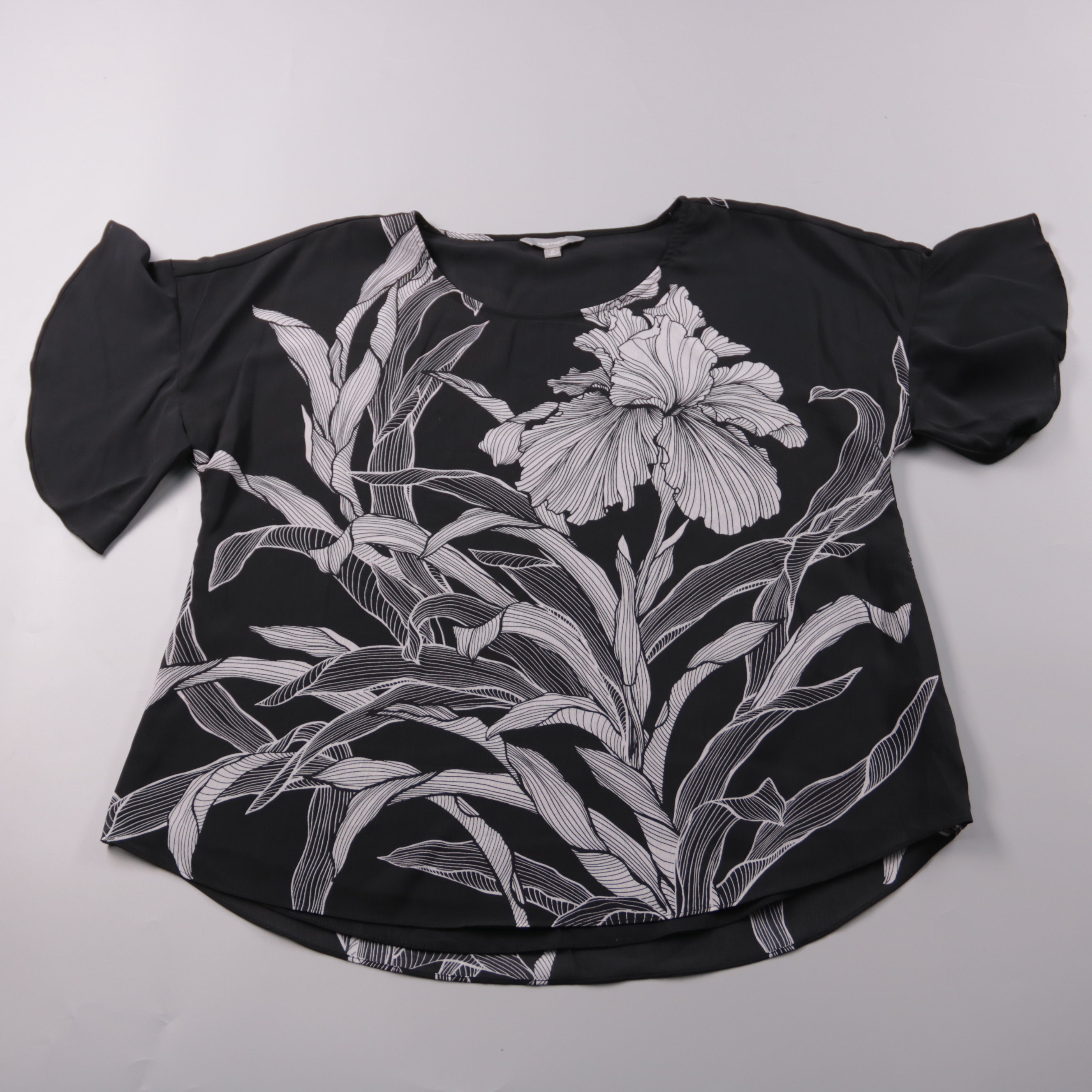 Блузка Suzannegrae чёрного цвета с крупным белым цветочным принтом и рукавами-фонариками. Подойдёт для офиса и на выход, легко сочетается с однотонными брюками или юбкой. Практичный материал из полиэстера почти не мнётся и быстро сохнет.