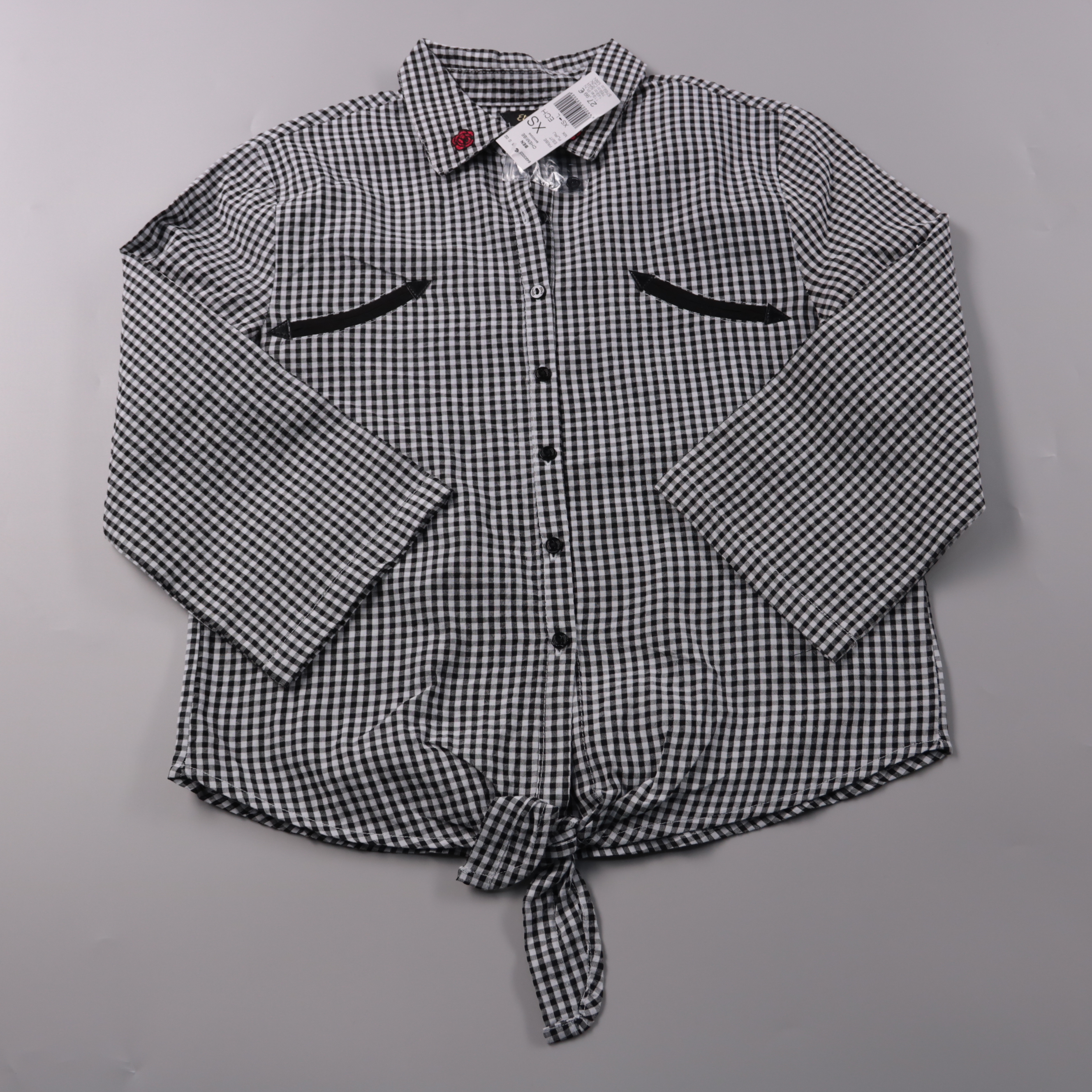 Блузка Etam в черно-белую клетку с длинным рукавом и завязкой спереди. Подойдёт для повседневных образов и офиса в стиле casual, хорошо смотрится с джинсами или юбкой. Смесовая ткань (хлопок/полиэстер) меньше мнётся и проще в уходе.