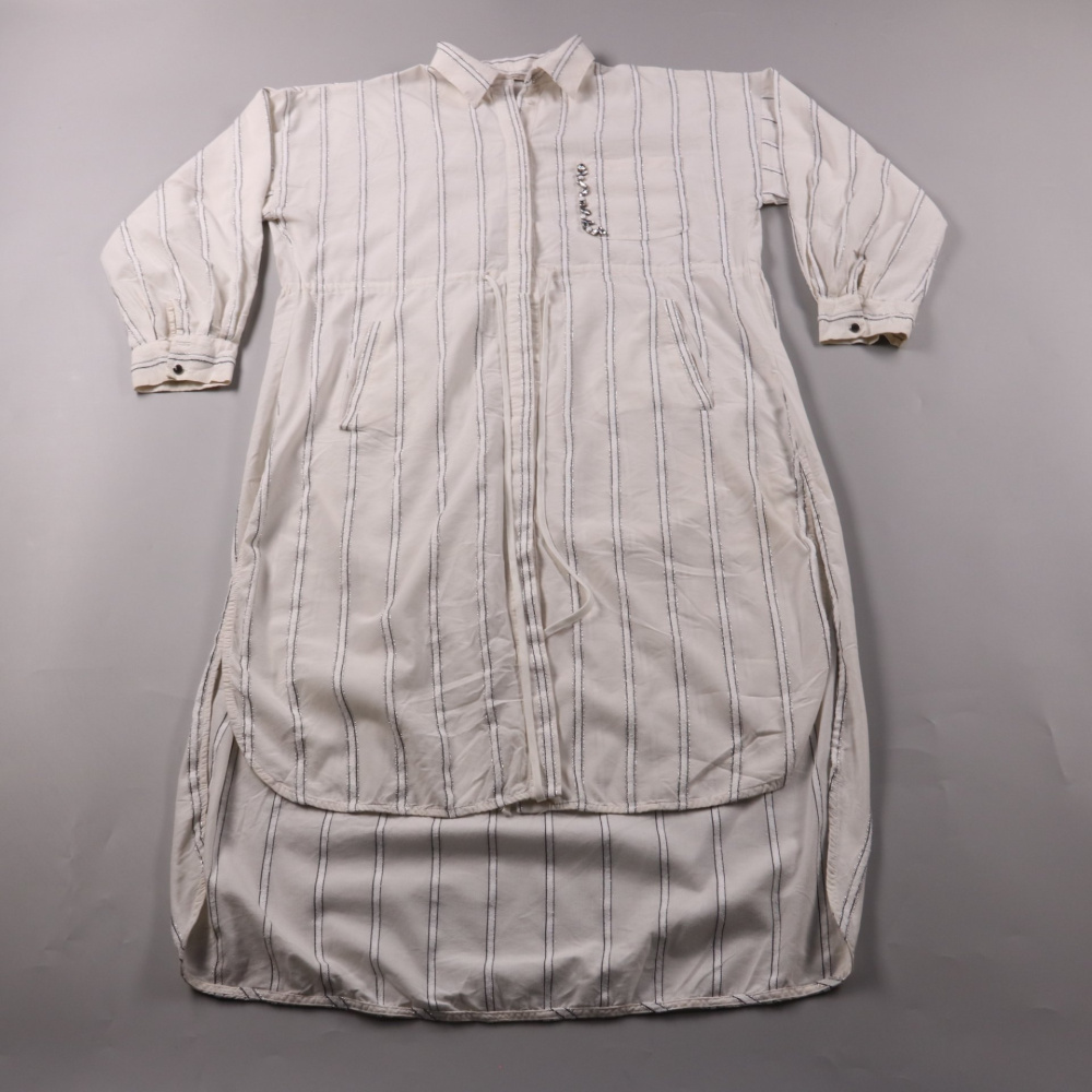 Удлинённая рубашка Serpil молочного цвета в вертикальную полоску, с отложным воротником и планкой на пуговицах. Подойдёт для повседневных образов и офиса, её удобно носить как платье-рубашку или нараспашку поверх топа. Практичный плюс — лёгкая ткань и ...