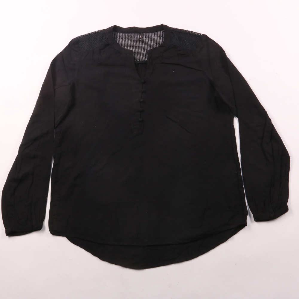 Блузка Only чёрного цвета с длинным рукавом и аккуратным вырезом с планкой. Подойдёт для офиса и повседневных образов, легко сочетается с джинсами и юбками. Материал из 100% вискозы приятный к телу и хорошо драпируется.