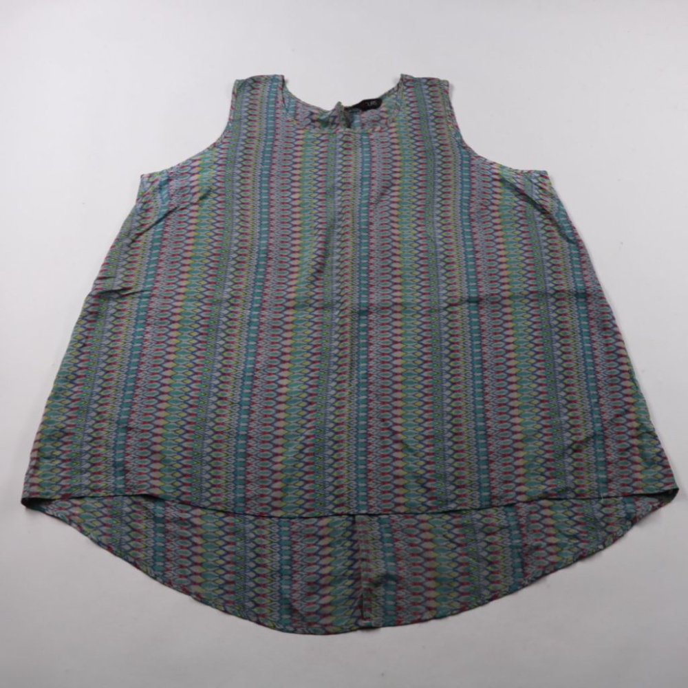 Женская блузка Yours без рукавов с разноцветным геометрическим принтом и удлинённой спинкой. Подойдёт для лета и тёплой погоды, удобно носить как самостоятельно, так и под жакет. Лёгкая ткань быстро сохнет и не сковывает движения.