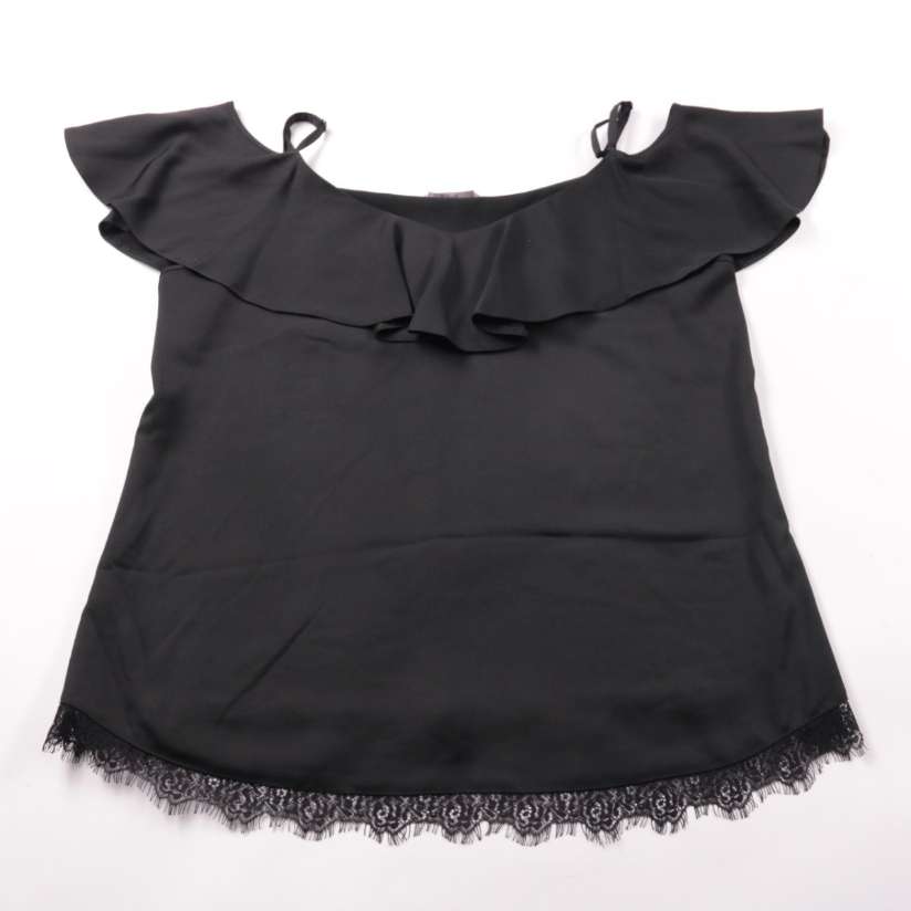 Женская блузка George чёрного цвета с открытыми плечами и воланом по линии декольте, низ украшен кружевной отделкой. Подойдёт для вечера, свидания или выхода в кафе, легко сочетается с юбкой или брюками. Материал 100% полиэстер — быстро сохнет и почти ...