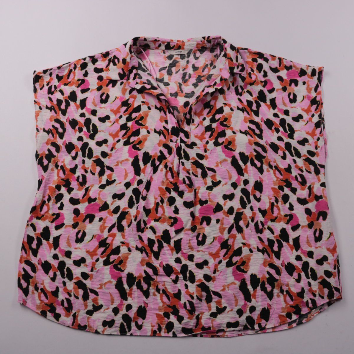Женская блузка George без рукавов с воротником и анималистичным принтом в розово-оранжевой гамме. Подойдёт для тёплой погоды и летних образов с джинсами, шортами или юбкой. Лёгкая ткань на основе вискозы хорошо дышит и быстро сохнет.