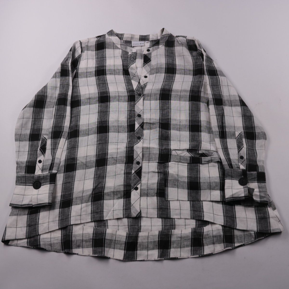 Льняная рубашка FOIL в чёрно-белую клетку, с длинным рукавом и застёжкой на пуговицы. Подойдёт для повседневных образов в тёплую погоду и наслоений. Лён хорошо дышит и комфортен в носке.