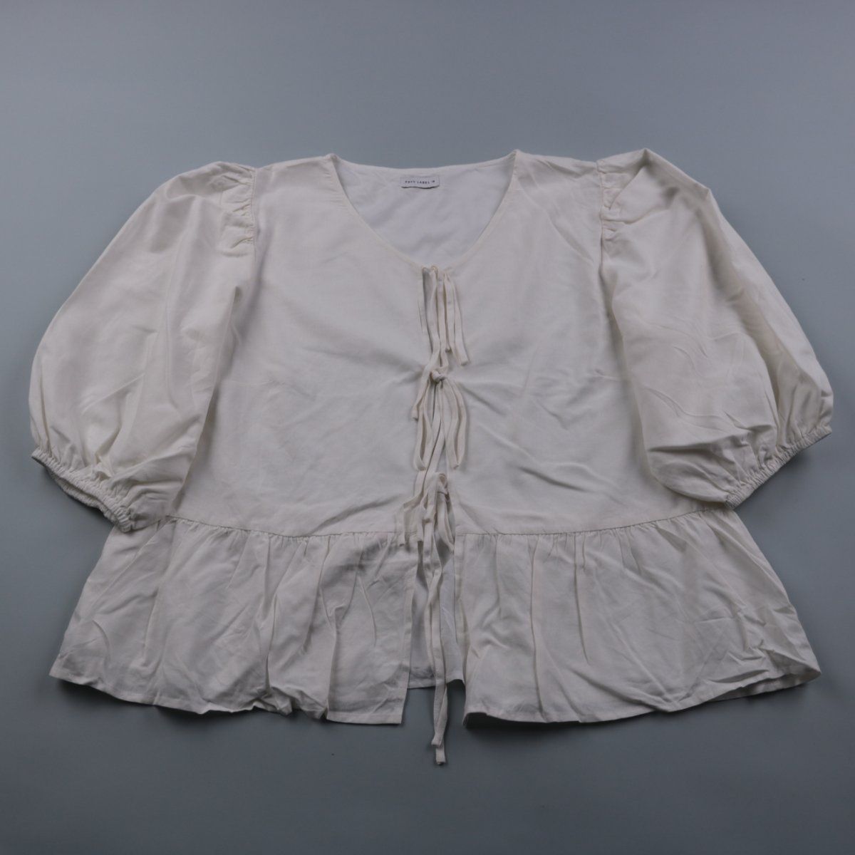 Белая блузка Fayt с V‑вырезом, завязками спереди и объёмными рукавами. Подойдёт для летних образов и отпуска, хорошо сочетается с джинсами и шортами. Натуральный состав с льном делает ткань более дышащей.