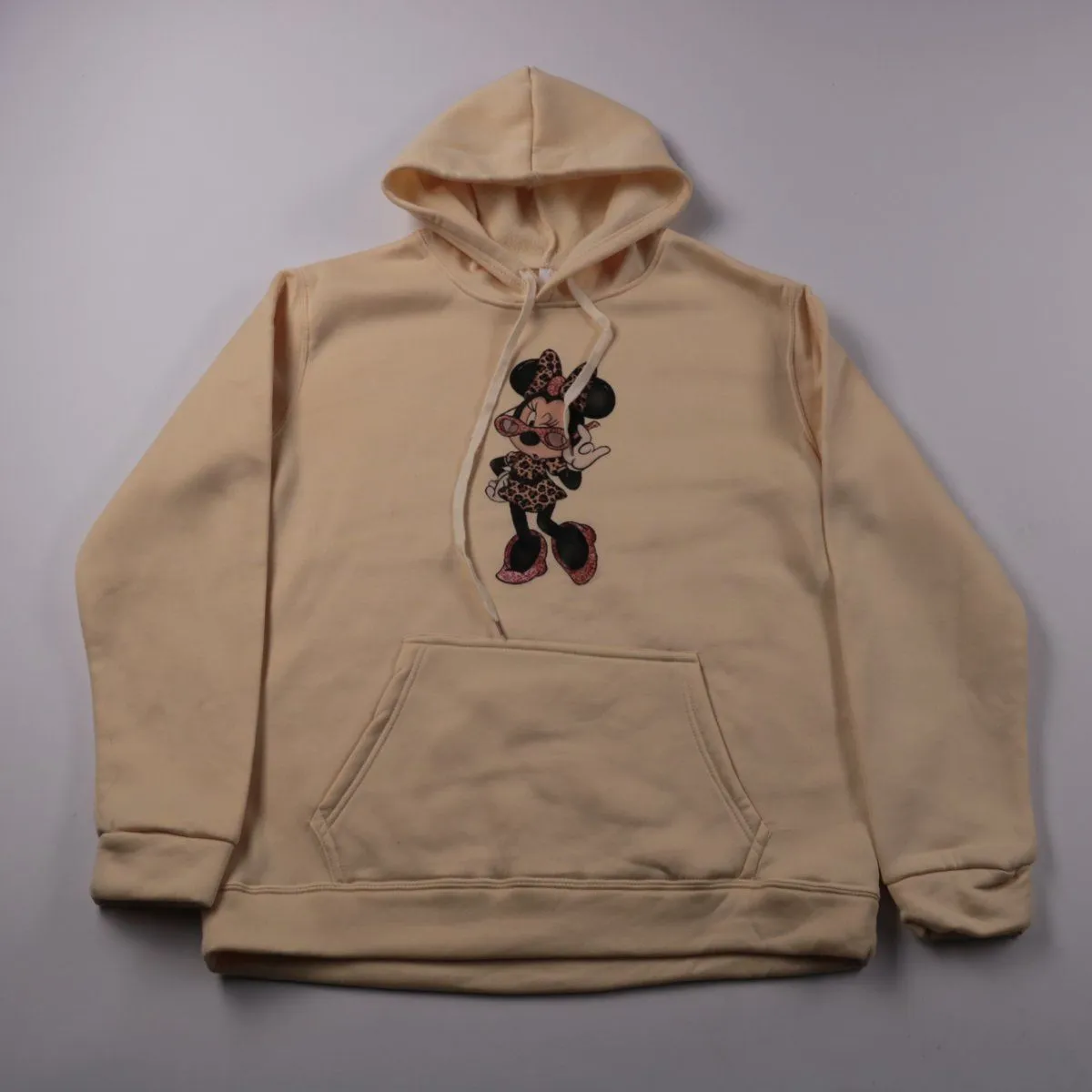 Толстовка-худи с капюшоном и карманом-кенгуру, с принтом Minnie Mouse спереди. Подойдёт для прогулок и повседневных образов в прохладную погоду. Мягкая ткань и свободный крой обеспечивают комфорт и легко сочетаются с джинсами и спортивными брюками.