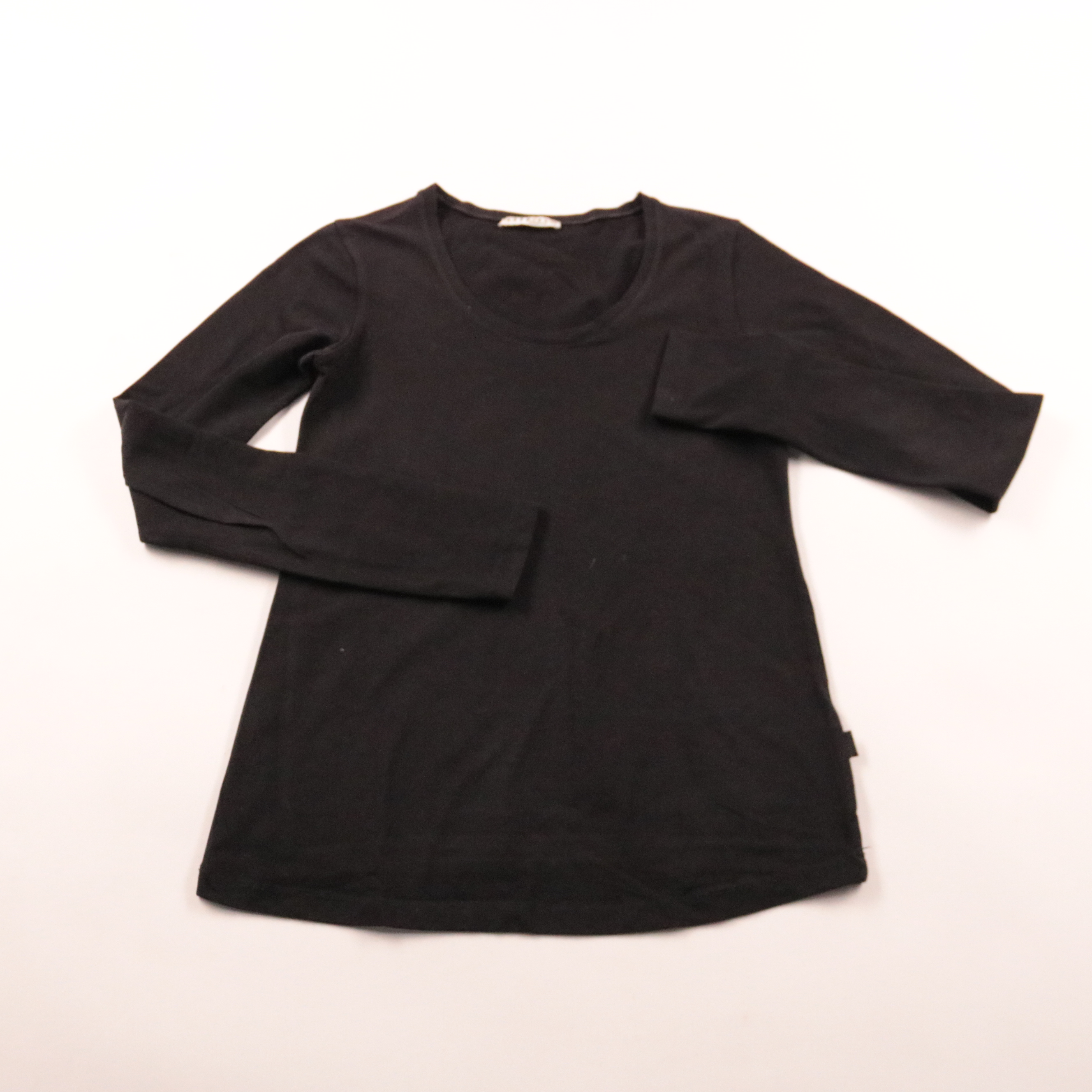 Чёрный лонгслив Hoppies maternity с круглым вырезом и длинным рукавом. Подойдёт для повседневной носки и как базовый слой в прохладную погоду. Хлопковая ткань с добавлением эластана мягко тянется и комфортно садится по фигуре.