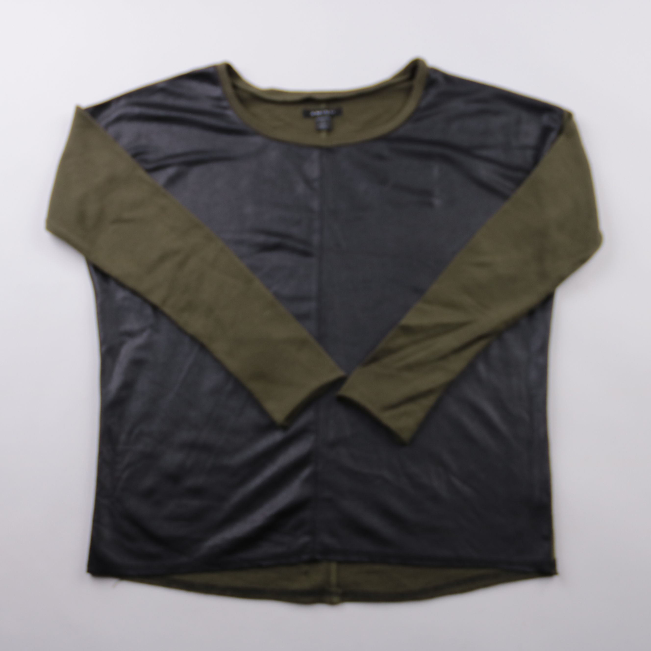 Лонгслив Amisu в контрастном сочетании чёрного и хаки, с круглым вырезом и длинным рукавом. Подойдёт для повседневных образов в прохладную погоду, хорошо сочетается с джинсами и брюками. Практичная вещь: лёгкий, не сковывает движения и удобно носить по...