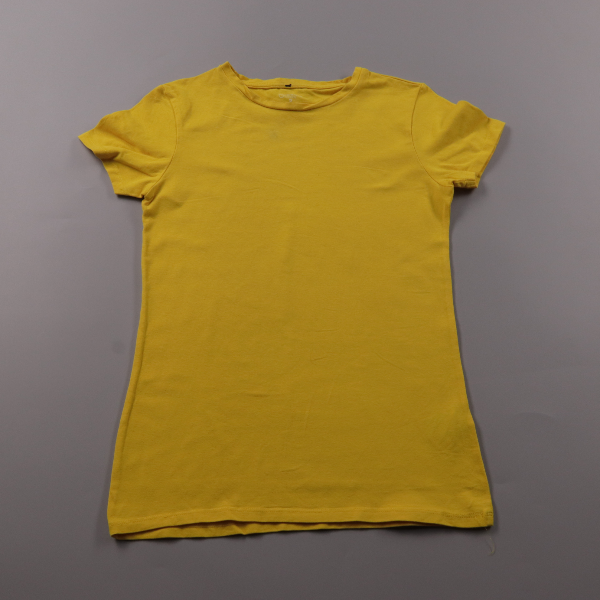 Жёлтая футболка Primark с круглым вырезом и коротким рукавом, мягкий трикотаж со стрейч-эффектом. Подойдёт для повседневных образов летом и как базовый слой в прохладную погоду. Легко сочетается с джинсами и юбками и не стесняет движений.