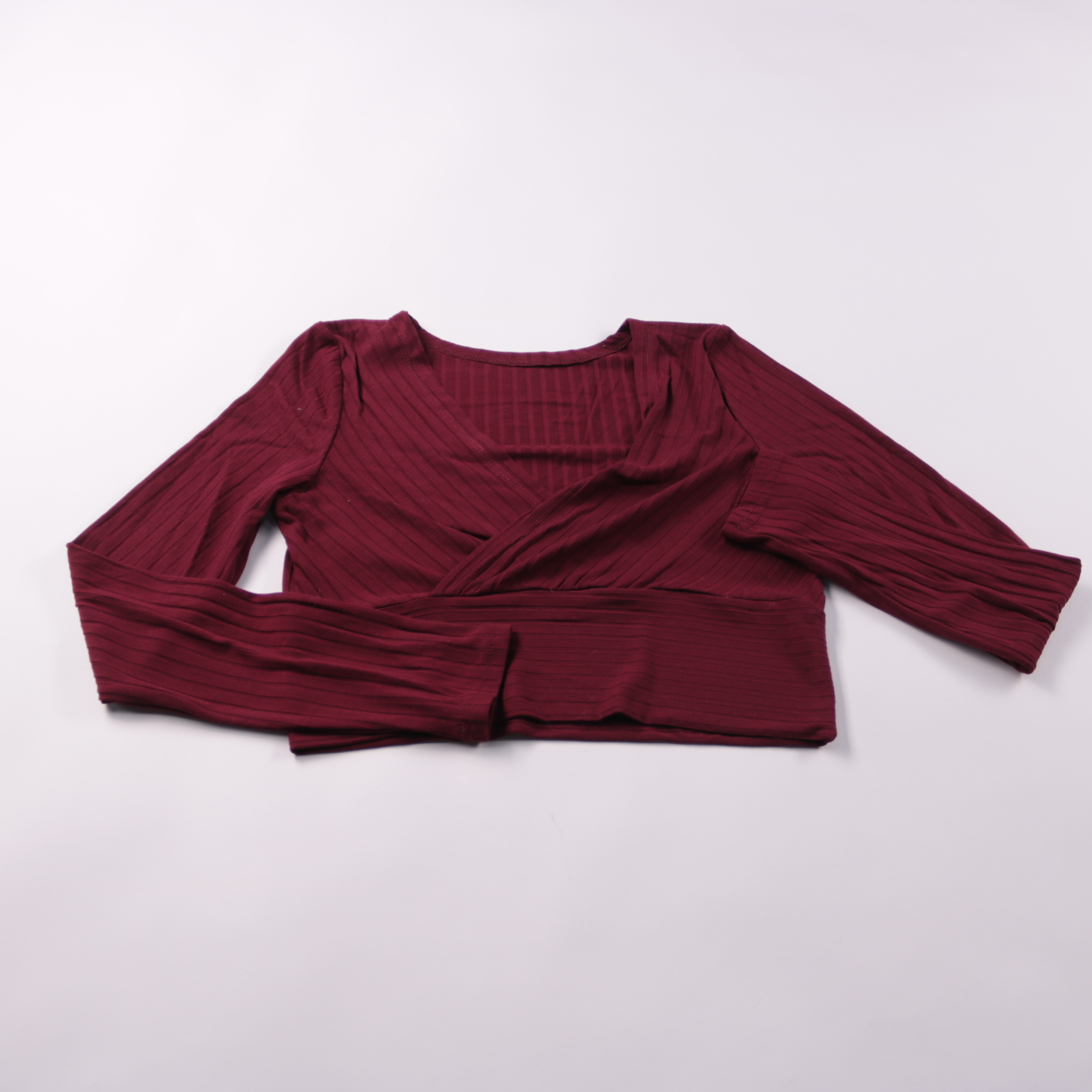 Женский топ Shein бордового цвета в рубчик с запахом и длинным рукавом. Подойдёт для повседневных образов и выходов, хорошо смотрится с джинсами или юбкой. Эластичная ткань комфортно тянется и аккуратно садится по фигуре.