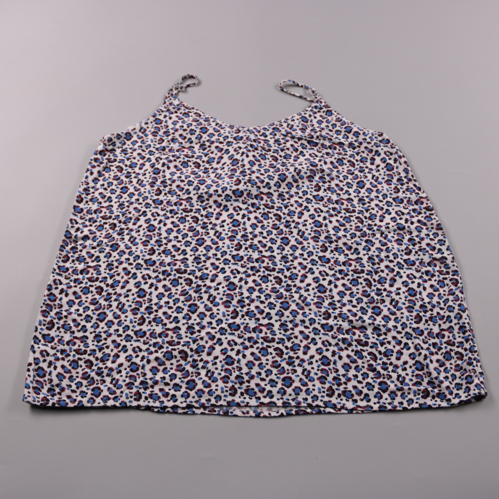 Женская майка на тонких бретелях с леопардовым принтом в бело-сине-бордовой гамме. Подойдёт для лета и отдыха, можно носить как самостоятельный верх или под жакет/кардиган. Лёгкая ткань и свободный крой не сковывают движения и удобны в носке.