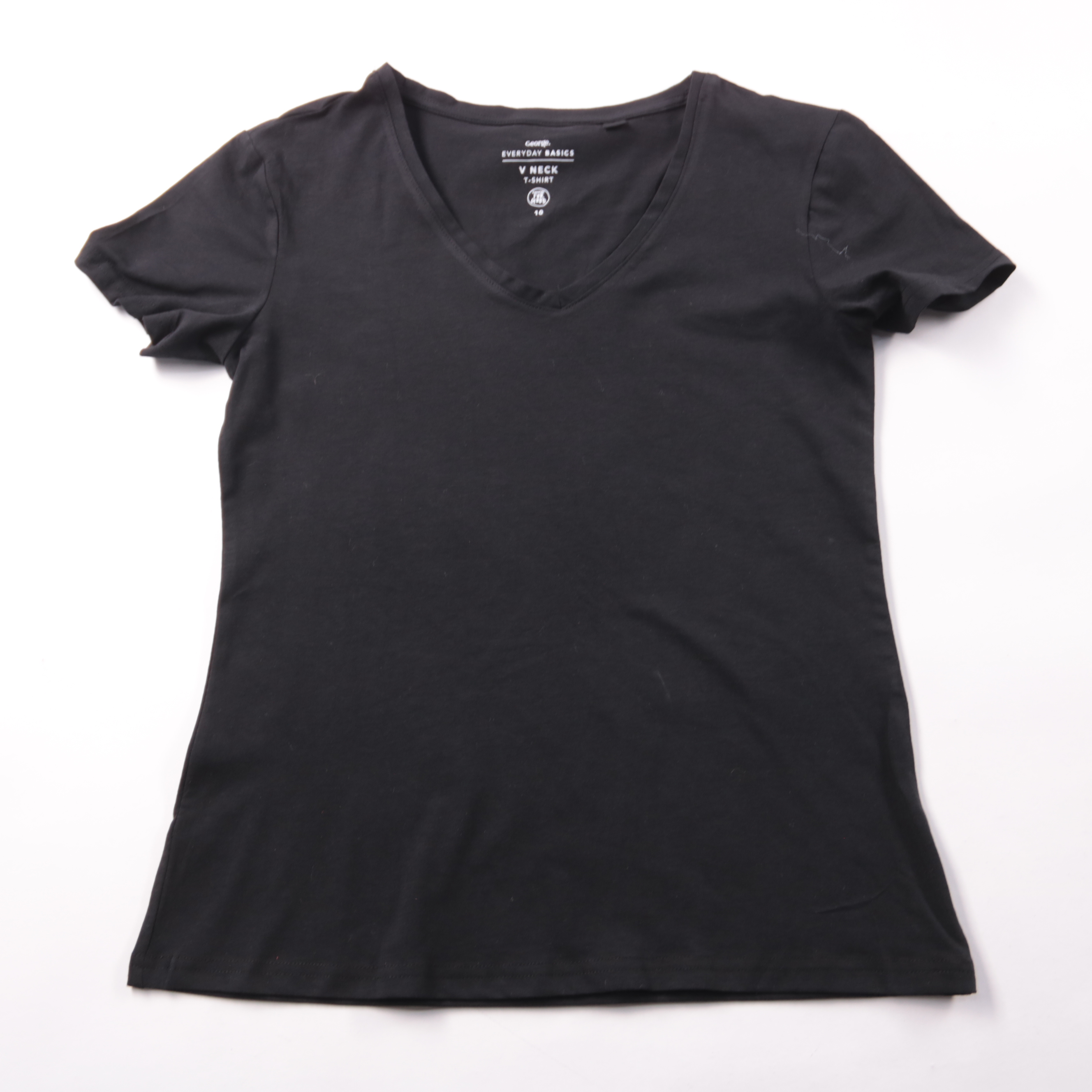 Женская базовая футболка George Everyday Basics с V-образным вырезом, цвет чёрный. Подойдёт для повседневной носки и как нижний слой под жакет/кардиган. Практичный плюс — эластичный хлопок хорошо тянется и комфортно сидит по фигуре.