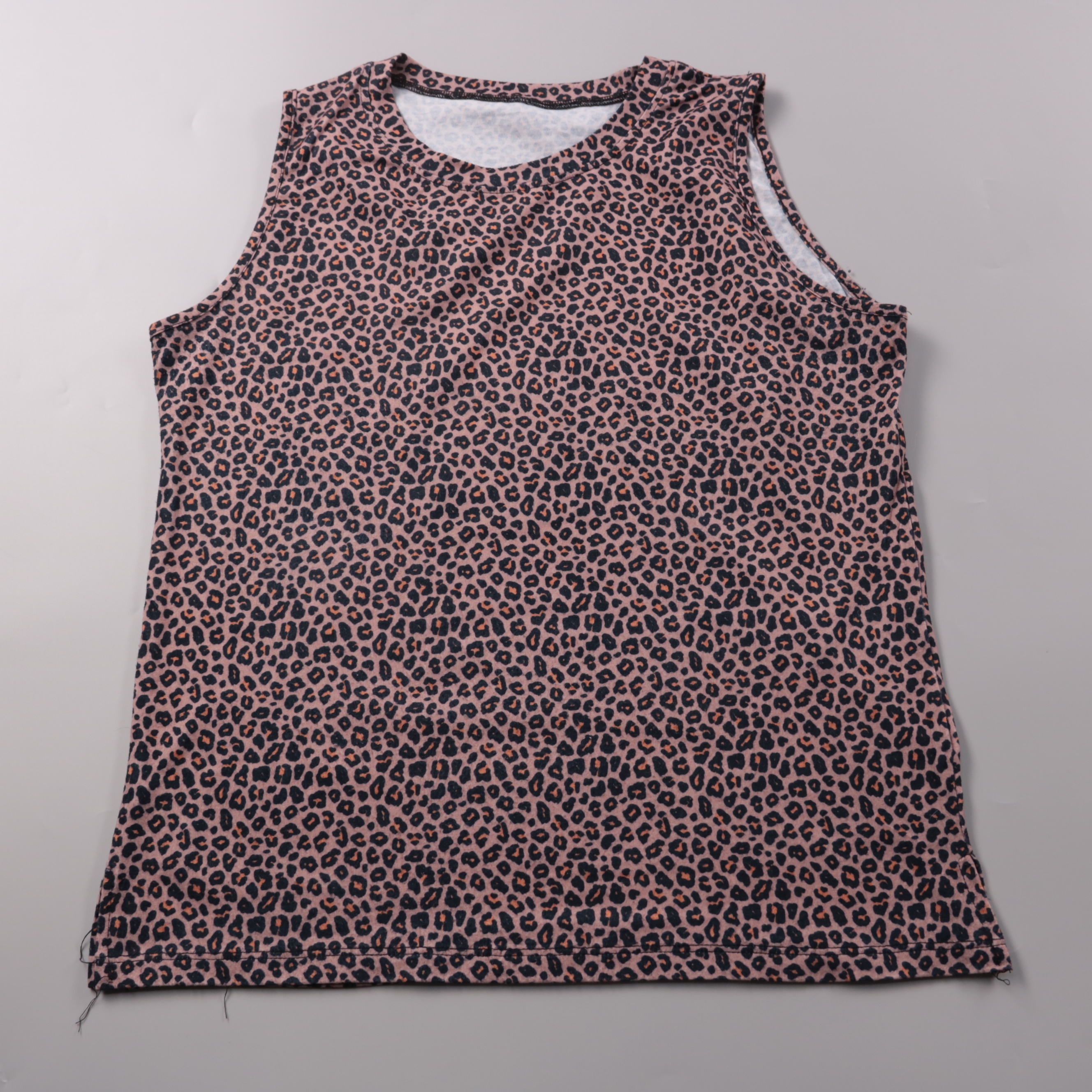 Женская майка с леопардовым принтом в розово-чёрной гамме и круглым вырезом. Подойдёт для повседневных образов летом или как базовый слой под жакет/кардиган в межсезонье. Мягкий трикотаж хорошо тянется и не стесняет движений.