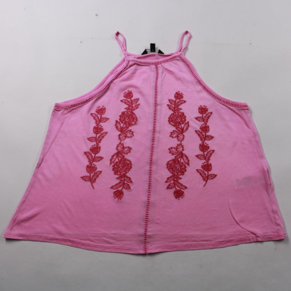 Розовый топ New Look на тонких бретелях с вышивкой в цветочный мотив спереди. Подойдёт для тёплой погоды и летних прогулок, легко сочетается с джинсами и юбками. Мягкая ткань (хлопок с модалом) комфортно ощущается на коже.